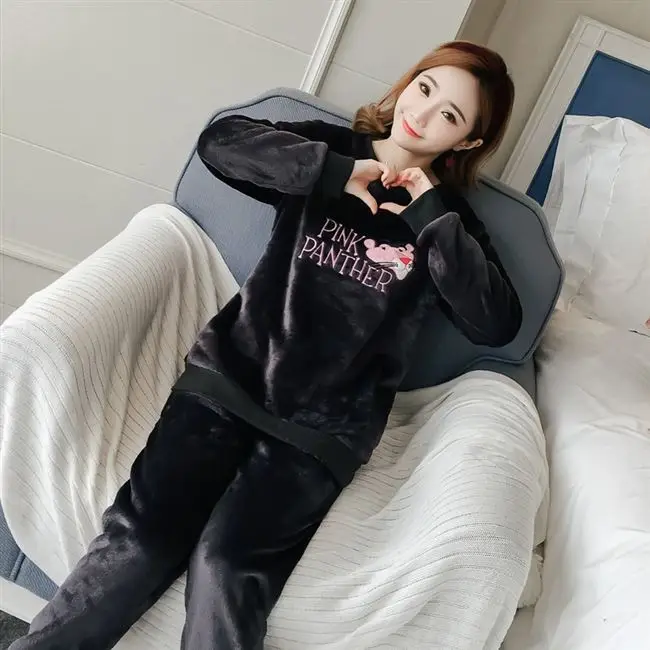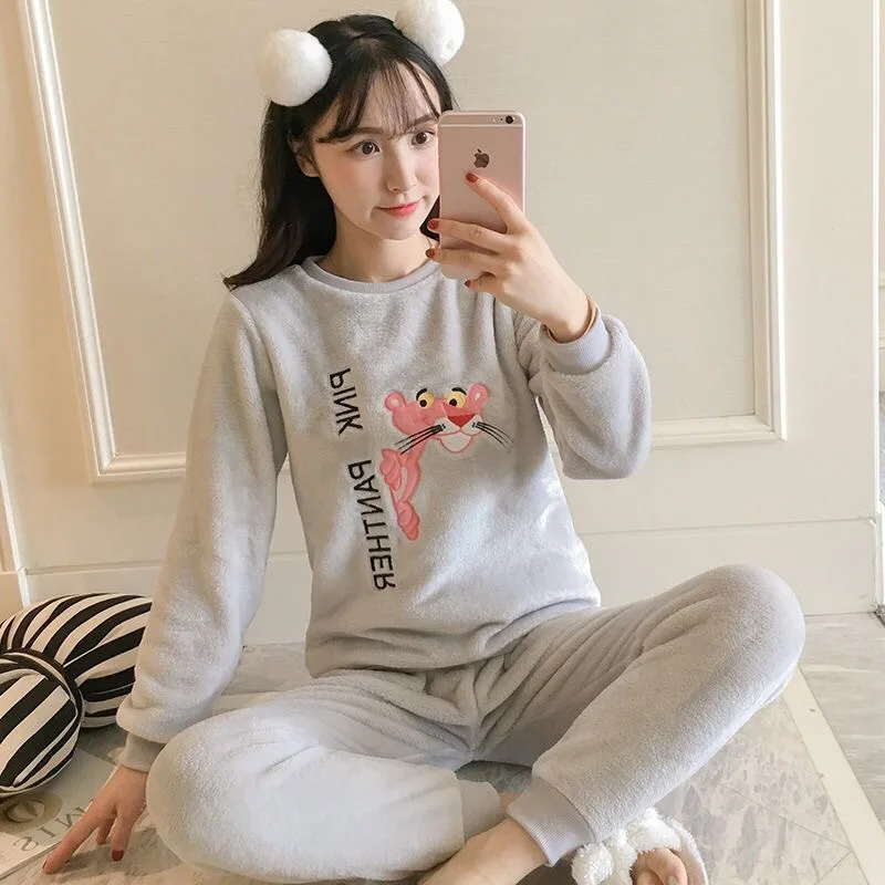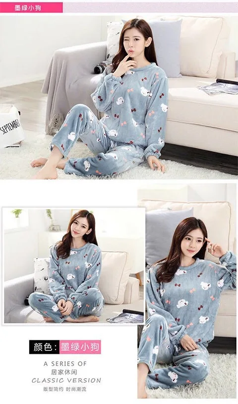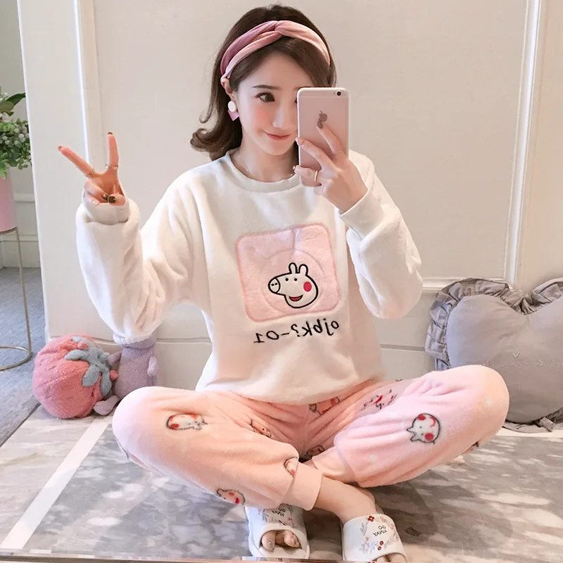 Пижама женская зимняя фланелевая с длинным рукавом, утепленная, бархатная, Коралловая, флисовая, милая, осенне-зимняя, домашний костюм для женщин