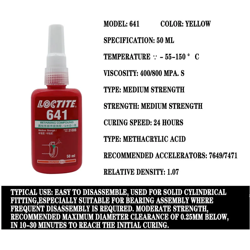 50 мл Loctite 641 подшипник, специальный клей, быстро удерживающий клей, съемный цилиндрический металл, сильный клей, блокирующий агент