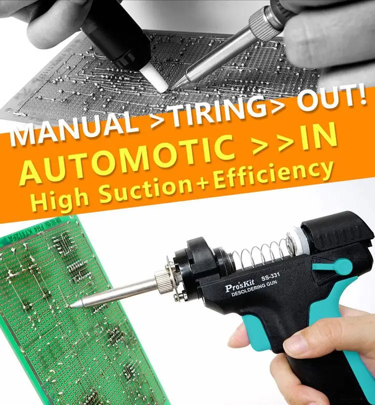 Цифровой электрический насос для распайки Pro'sKit SS-331H с ЖК-дисплеем, антистатический припой высокой мощности с сильным всасыванием, пистолет для припоя
