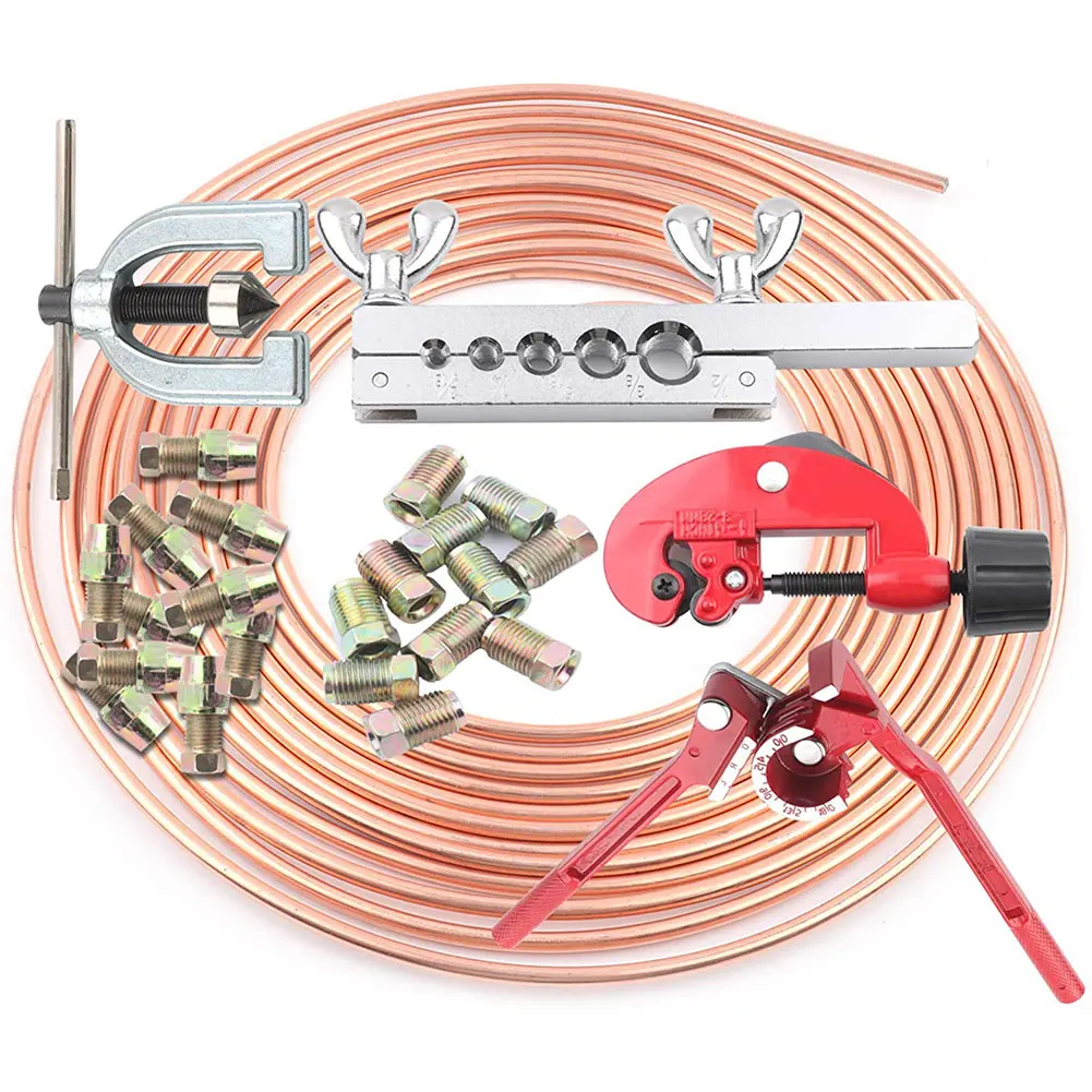 Автомобильные тормозные трубы, удобный Ремонтный комплект тормозной трубы 7,62 м, медная Тормозная трубка, тормозная труба, режущая машина, 12 соединительных труб