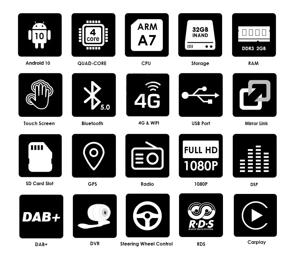 Android 10 Автомобильная стереомагнитола, мультимедийный плеер для ...