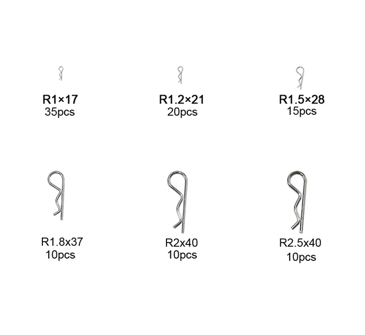 Особенности:100% новыйУстойчивость к коррозии.Чехол для хранения держит булавки чистыми и организованными.Быстрая установка и удаление.Спецификация:Крепежный зажим RМатериал: углеродистая стальОбработка поверхности: оцинкованнаяРазмер (прибл.): M1 * 17 мм, M1.2 * 21 мм, M1.5 * 28 мм, M1.8 * 37 мм, M2 * 40 мм, M2.5 * 45 ммШироко используется для автомобилей, прицепов, машин, гаражей, мастерских, кораблей, силового оборудования, грузовиков, газонокосилок, обслуживания и крепления небольших двигателей.В комплект входит:35 шт. M1 * 1720 шт. M1.2 * 2115 шт. M1.5 * 2810 шт. M1.8 * 3710 шт М2*4010 шт. M2.5 * 451 * коробка для храненияПримечания:1. Сравните размеры деталей с вашими, пожалуйста, учитывайте погрешность в 1-3 мм из-за ручного измерения.2. Пожалуйста, оставьте сообщение, прежде чем дать плохие отзывы, если у товара есть какие-то проблемы.Спасибо за понимание и хорошего дня!
