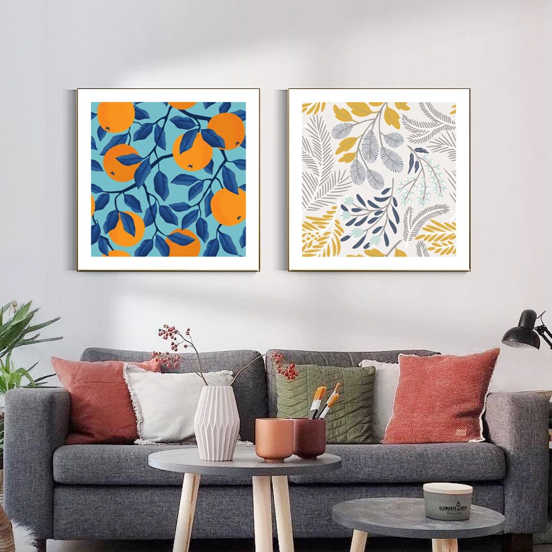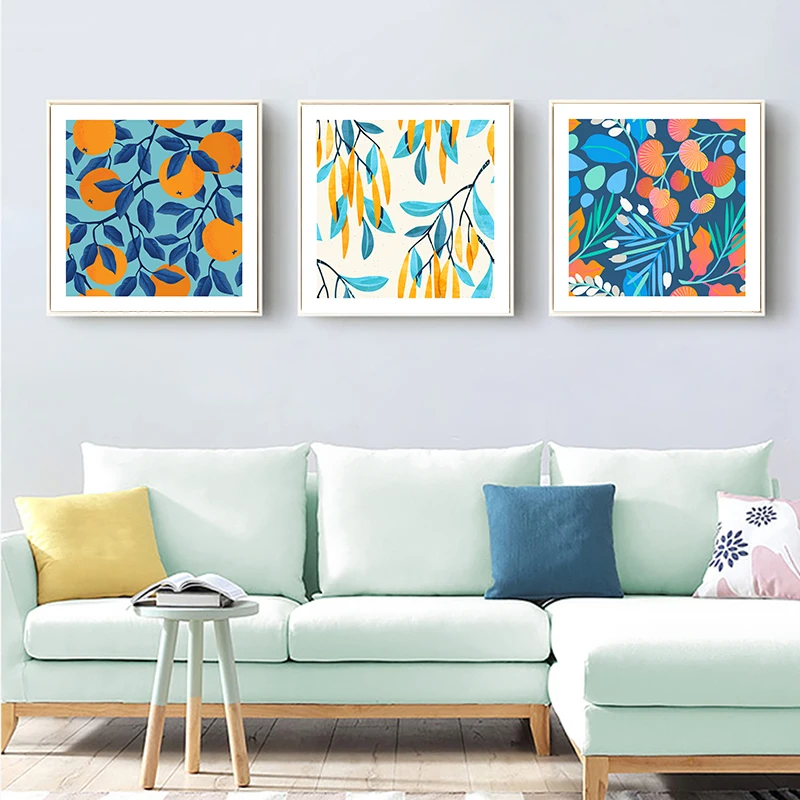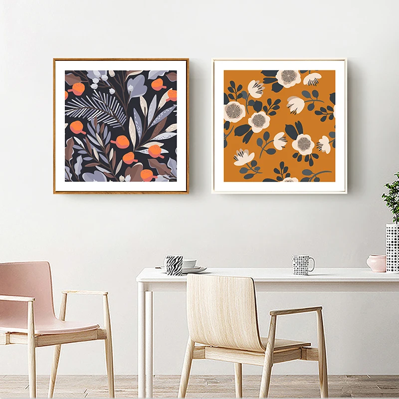 Настенный плакат в стиле ретро, рисунок на холсте с изображением растений, цветов, фруктов, минималистский дизайн, квадратная картина, декор для гостиной