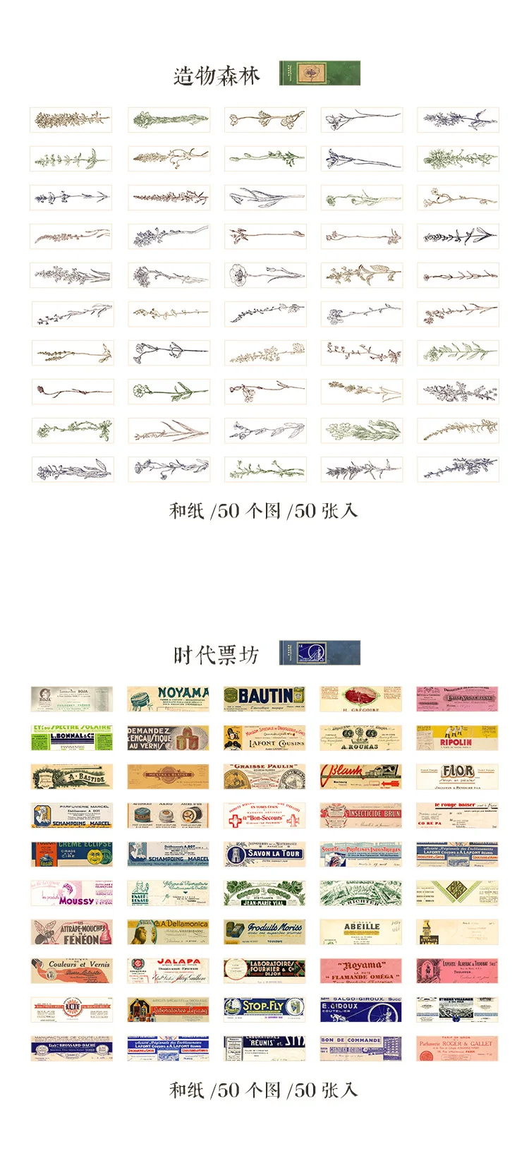 50 шт., набор винтажных наклеек в виде блокнота