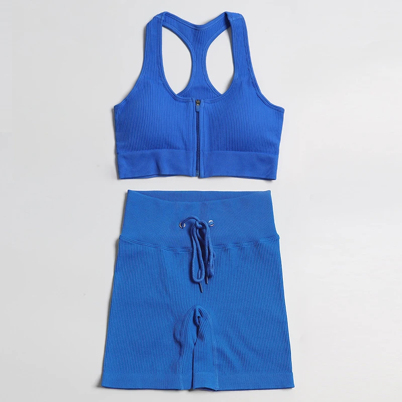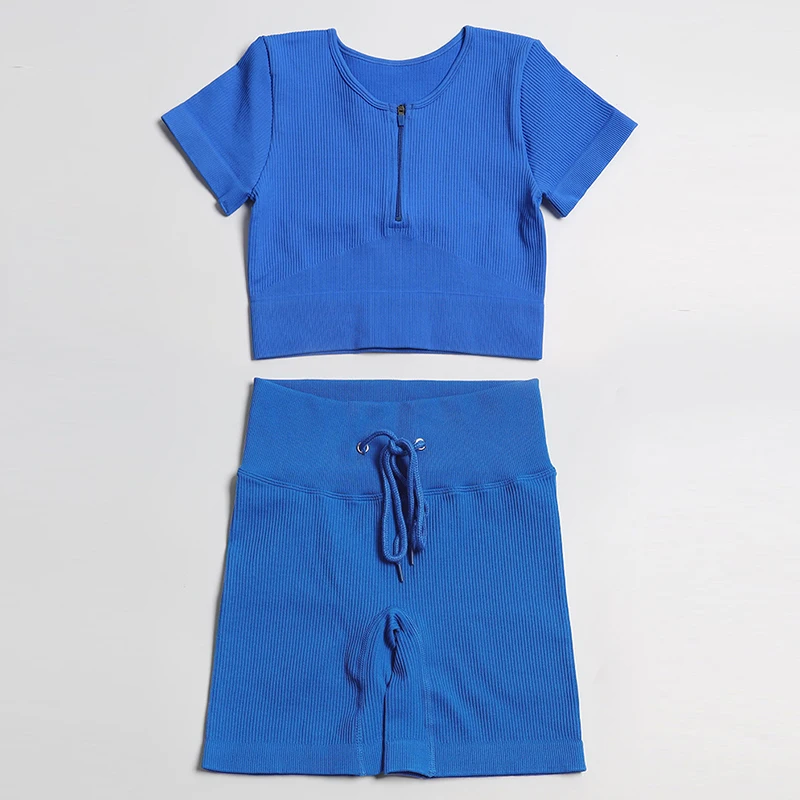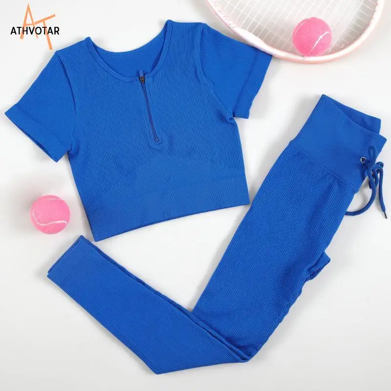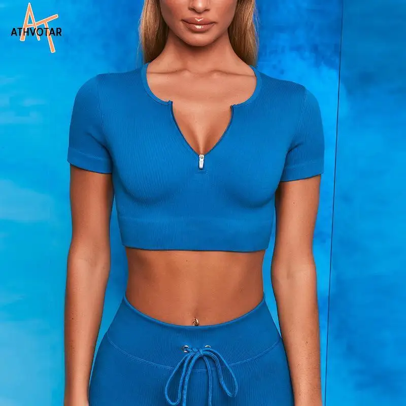Спортивный комплект для тренировок ATHVOTAR, кроп-топ на молнии со средней талией, шорты для фитнеса, спортивная одежда с кулиской, спортивный наряд для женщин