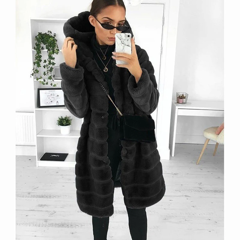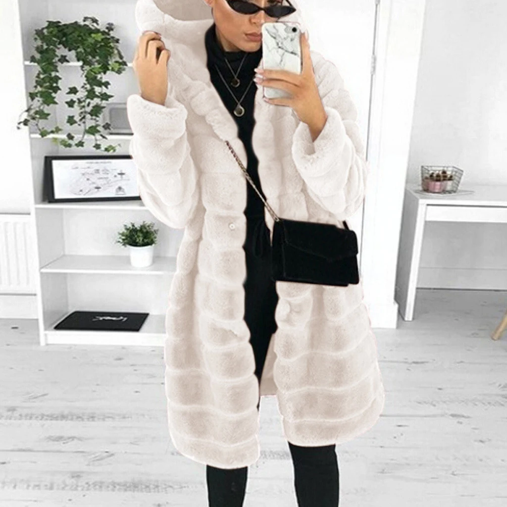 Женское повседневное однотонное пальто Тедди, зимняя флисовая длинная куртка с длинным рукавом, пальто с капюшоном из меха ягненка, женская теплая верхняя одежда, 2021