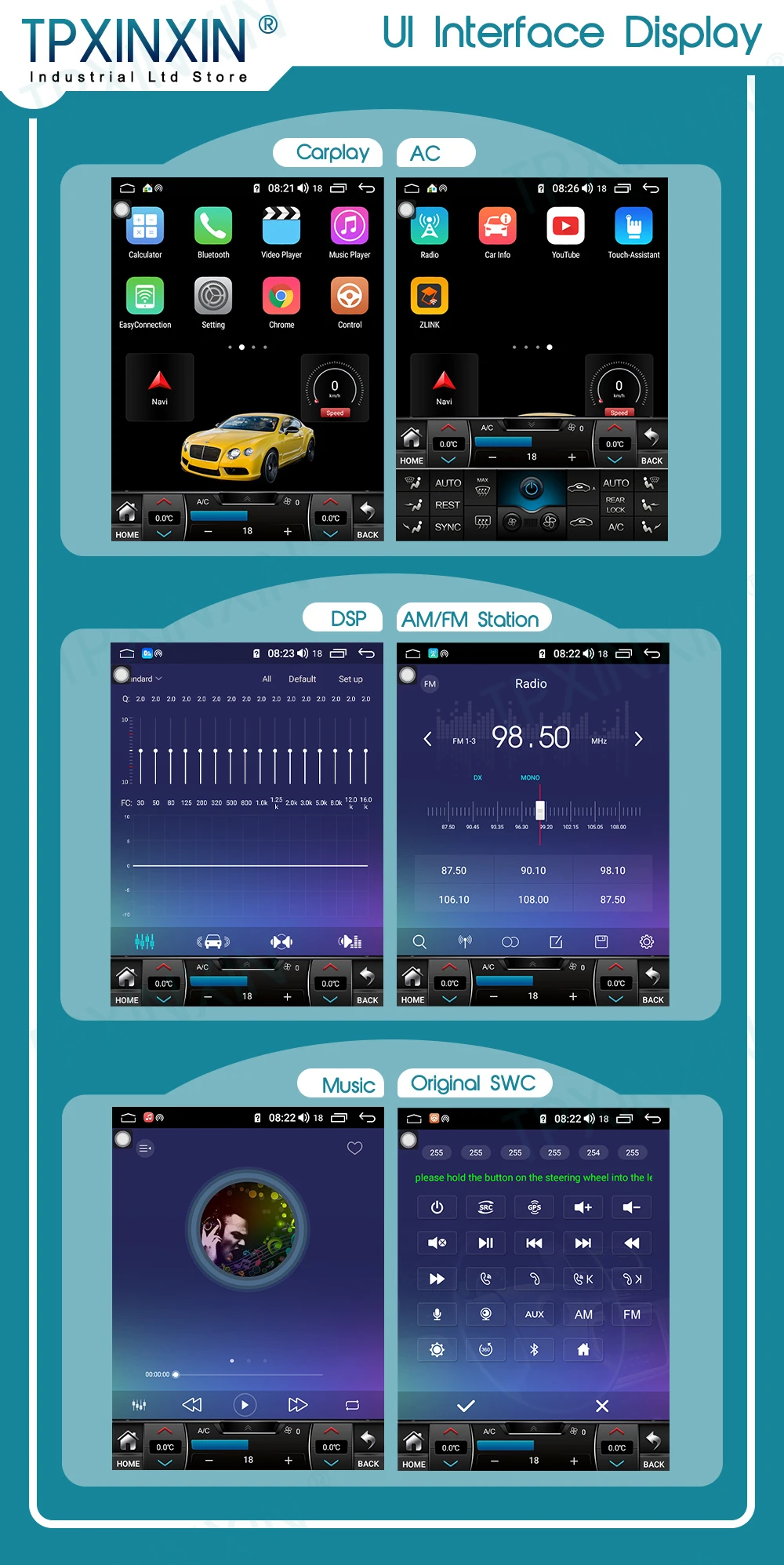 Формат видео: поддержка HD 1080P /2K IPS экранВстроенный Carplay.Поддержка Android AUTOГолосовое управление на английском языкеРазрешение экрана: 1024*768 или выше, емкостный 5 точек касания, с функцией двойной зоныBluetooth 5,0 синхронизация телефонных звонков вручную, поддержка NX TX ATTX.Встроенная функция Wi-Fi (Используйте точку доступа со смартфона для подключения к Интернету)Встроенное приложение Google Play Store, загрузите приложение, которое вы хотите.Оперативная память: DDR3 2/4/6 ГБ, Поддержка внешний 32/64/128 ГБ флэш-памятиВстроенная автономная карта GPS, поддержка онлайн-карты, поддержка Google Map.Аудиовыход 4*50 Вт, эквалайзер: 9 эквалайзеров для звукаРадио чип NXP6686, AM / FM с RDSПоддержка AUX-IN аудио, с 2 usb-портамиПоддержка управления рулевым колесомСертификация: CE FCC RoHsНапряжение: DC12V-14V