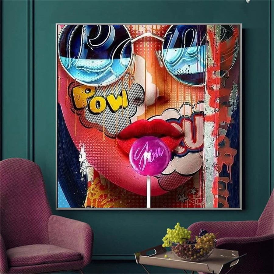 Алмазная картина сделай сам, граффити с лицом, крутая девушка, поп-...