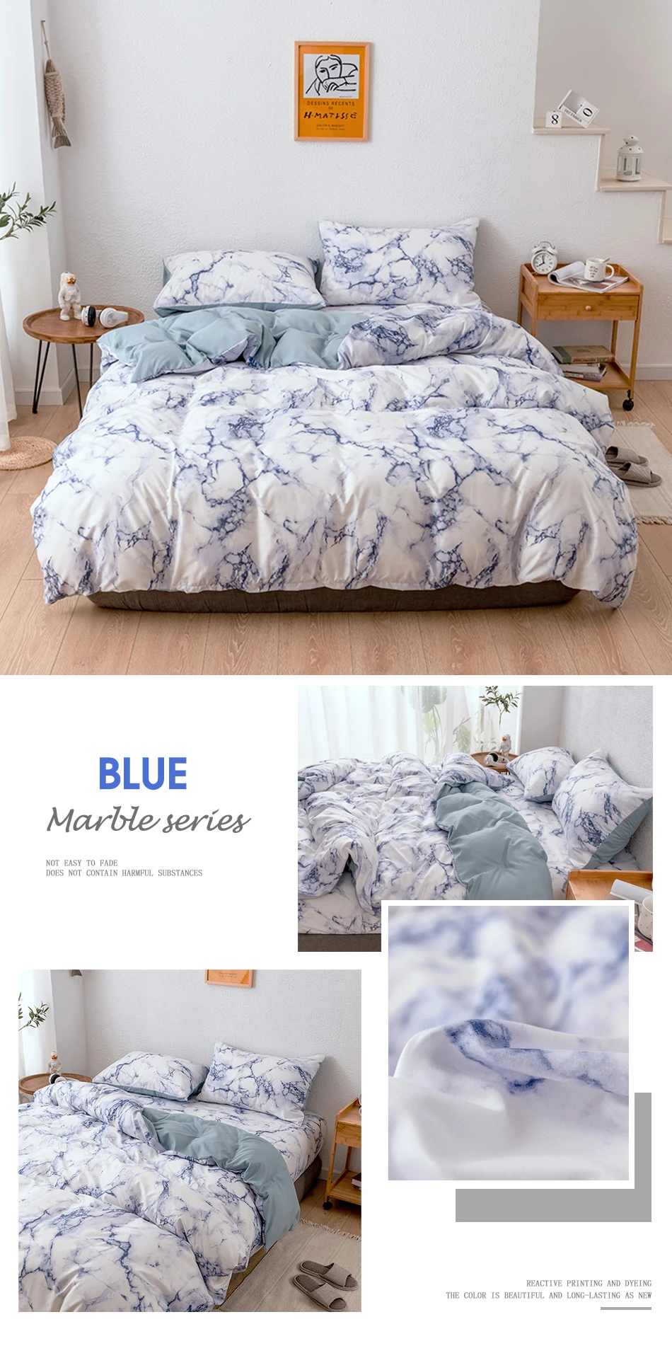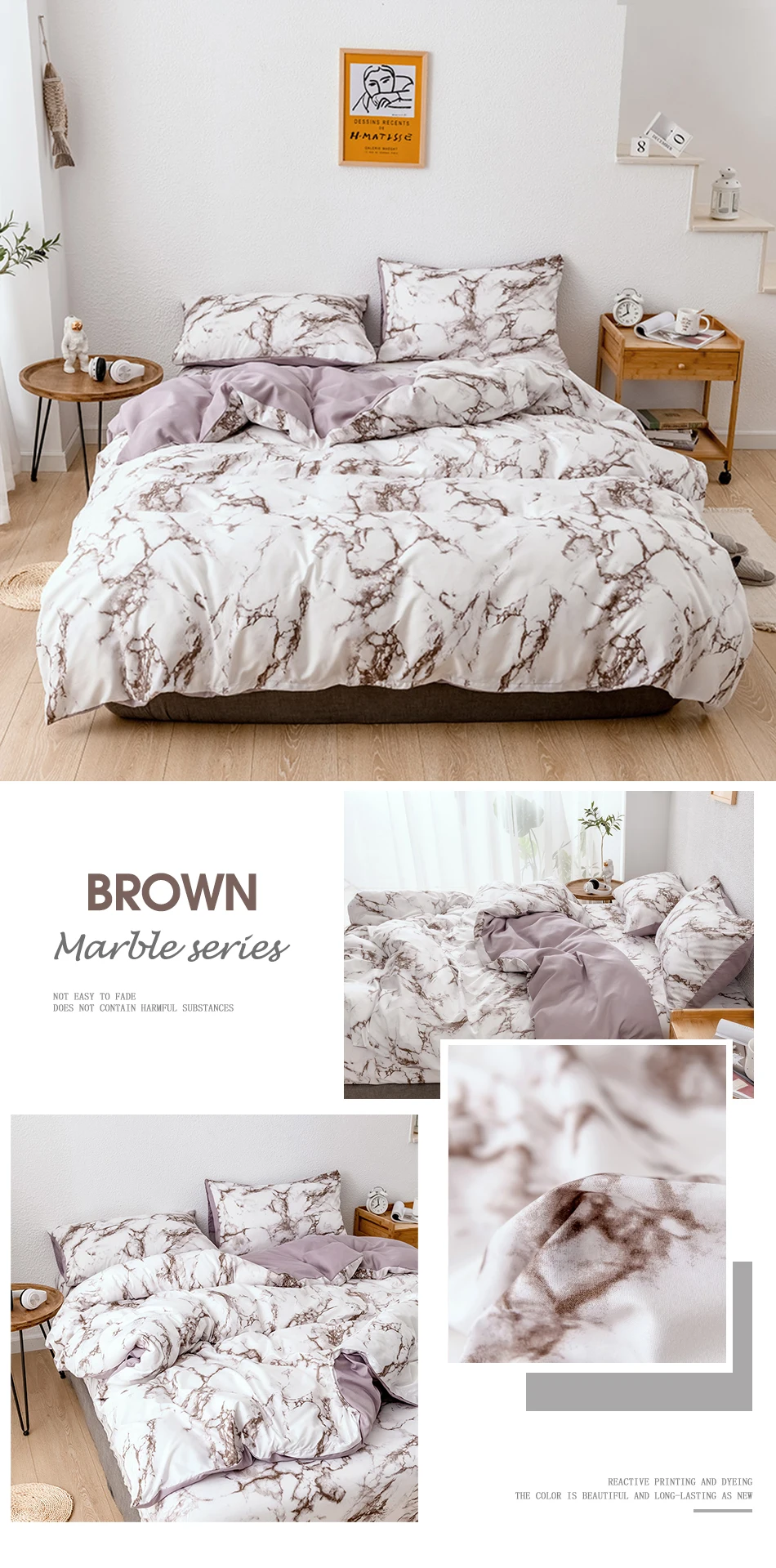 Мраморный Комплект постельного белья, современный комплект с пододеяльником в скандинавском стиле, удобный пододеяльник, наволочка, постельное белье, одинарный и двойной домашний текстиль