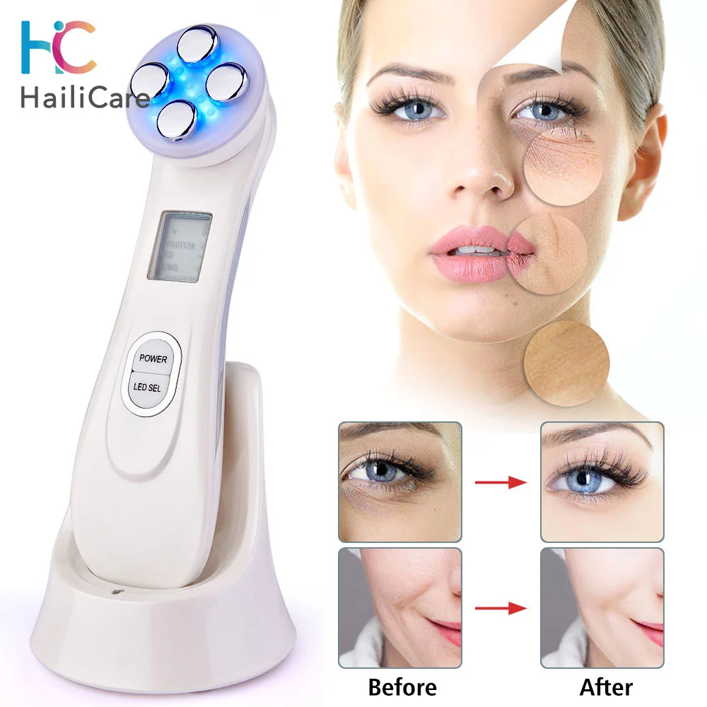 Радиочастотный светодиодный фотонный аппарат для ухода за кожей, 5 в 1, RF & EMS