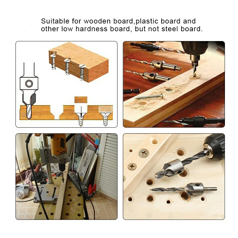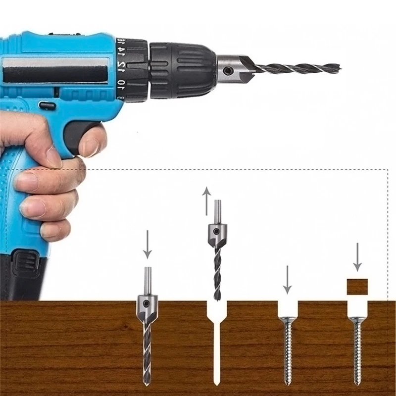 Сверло для 3-10 мм, флейта, Круглый хвостовик, регулируемая коническая деревянная скрывающая головка винта, зенкер, деревообрабатывающий сверлильный инструмент