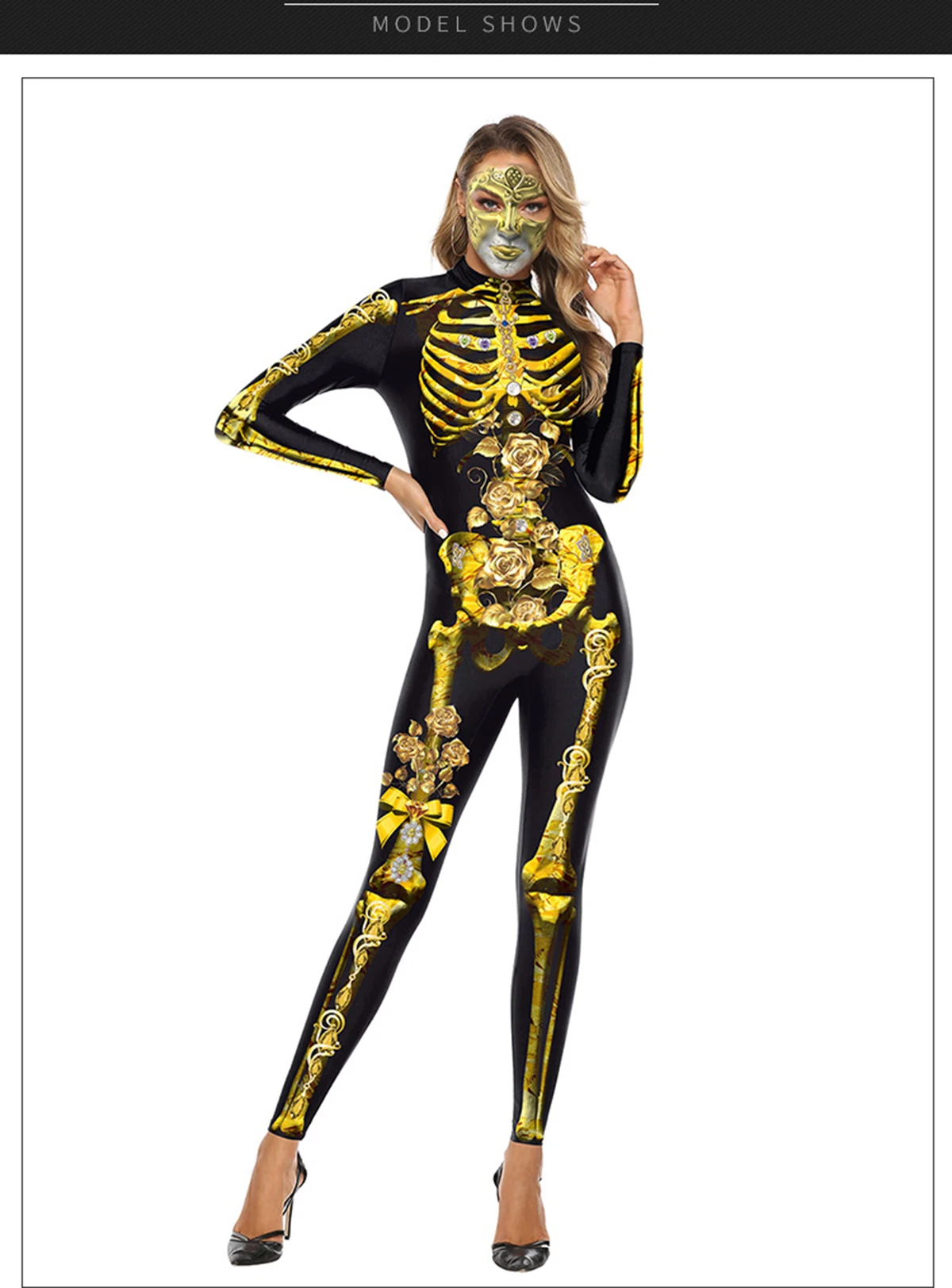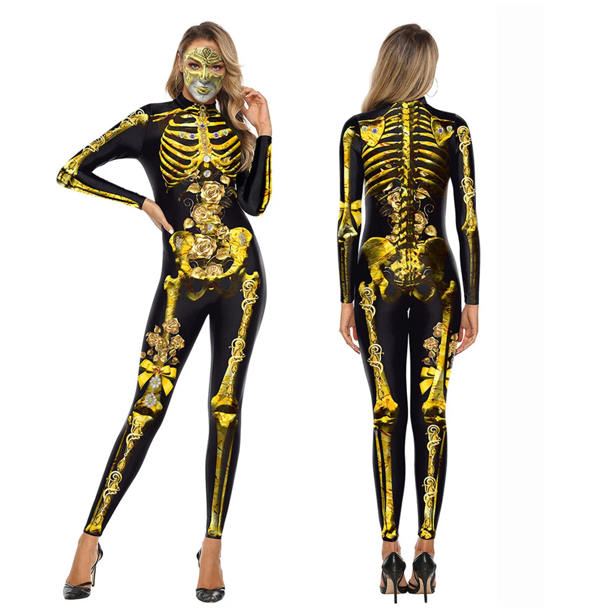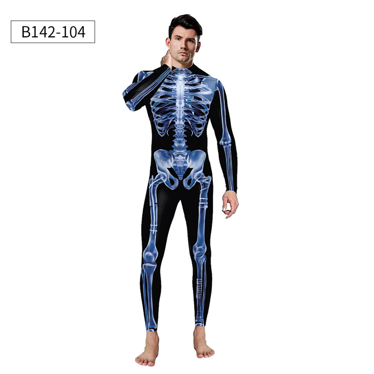 Комбинезон для косплея на Хэллоуин с 3D рисунком, готический ужас, каркас, гибкий комбинезон, искусственный костюм для вечеринки