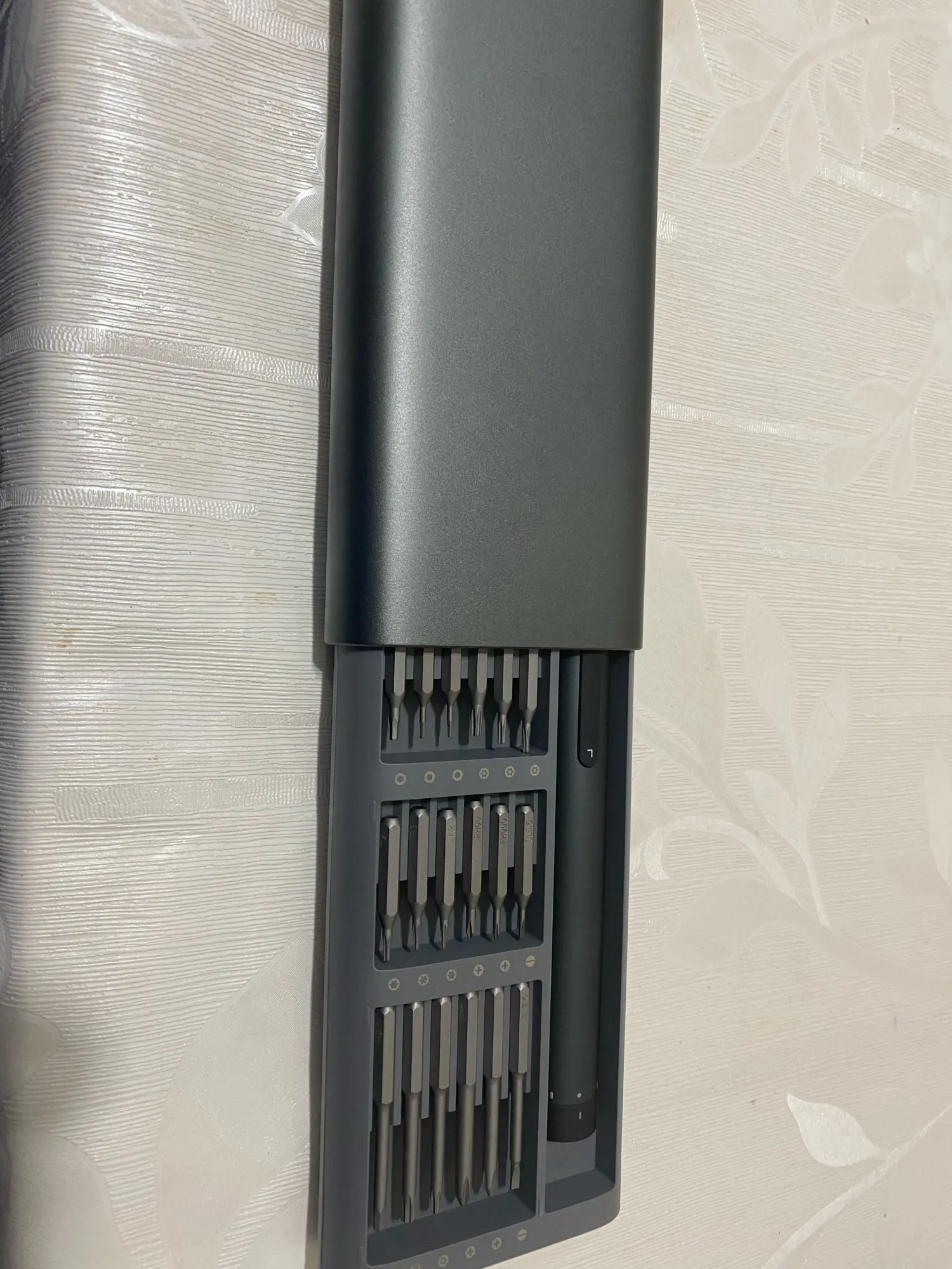 Xiaomi Mirami не имеет ничего подробного .. Я хотел бы получить немного паза, чтобы надеть палец так, что его легко вытянуть из драйвера .. Чехол достаточно длинный, чтобы его можно было хранить вместе с насадкой, и отсутствие деликатности, чтобы сбросить немного меньше драйвера. Если длина немного длиннее. Кончик драйвера не вращается. Невозможно, потому что бит большой.