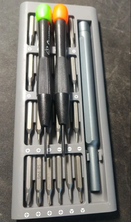 Мне понравилось слишком сильно, потому что пришло слишком быстро, точно как описано, для меня, Это будет разобрать компьютер очень приятно имеет юридическую силу без подсчета, что удивило меня качество материала чехол для хранения битов является магнитным, что помогает очень держать организованным и чехлом это покрытие из алюминия. Была отличная покупка, я очень рекомендую