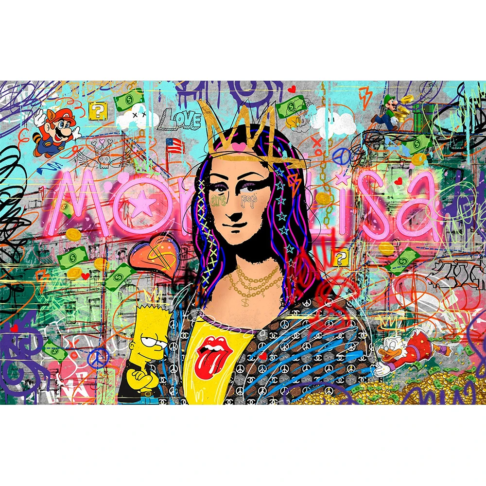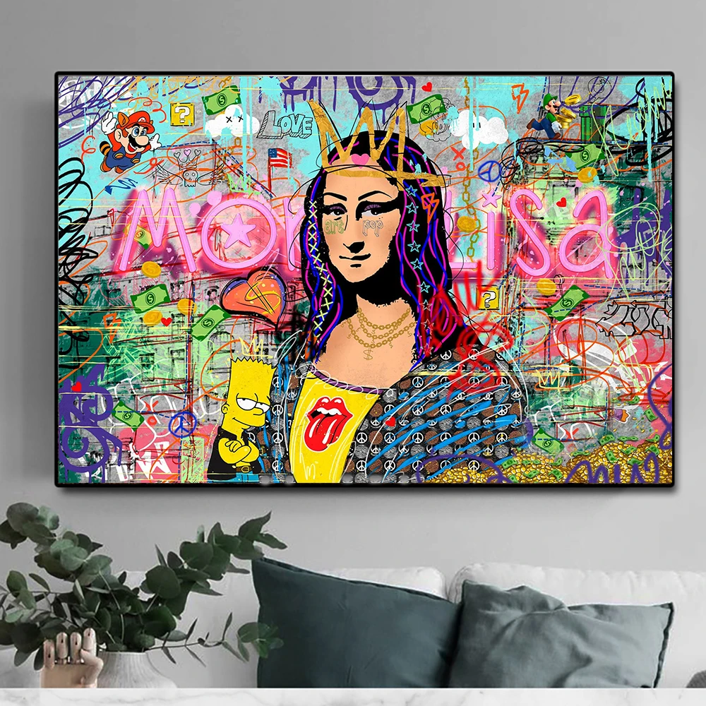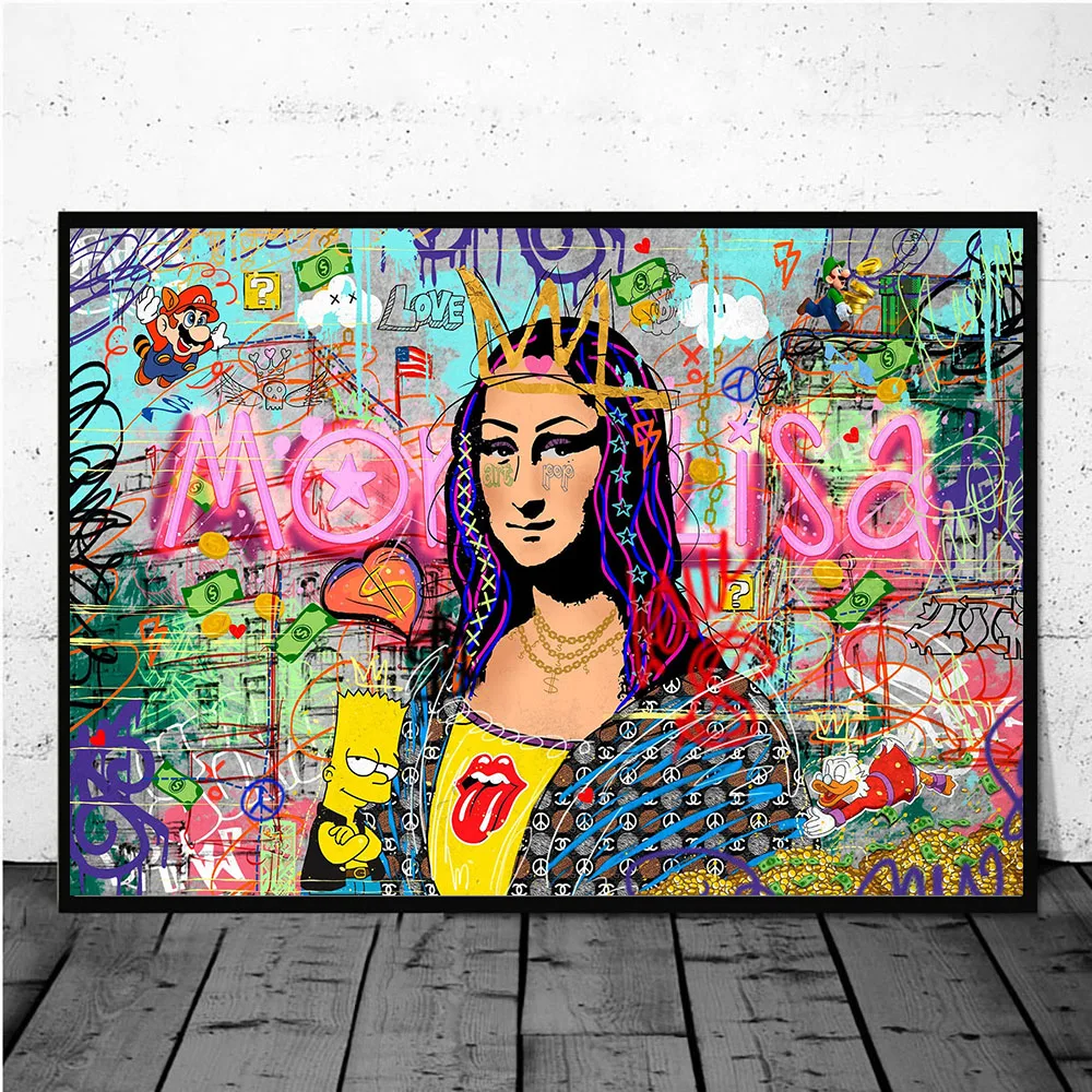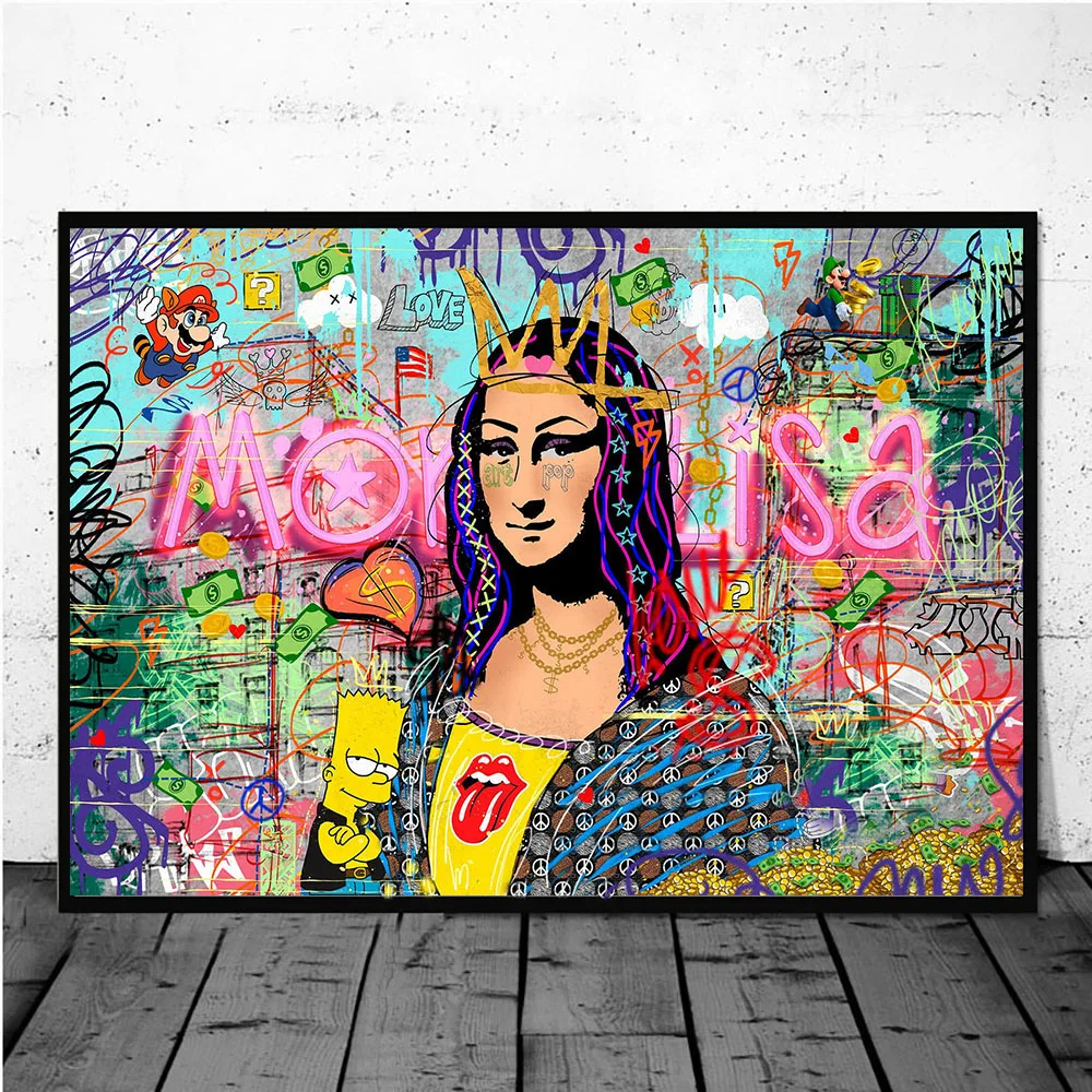 Картина на холсте, картина с изображением граффити, Репродукция Моны Лизы, картина маслом, постер, Настенная картина для гостиной, домашний декор, Куадрос