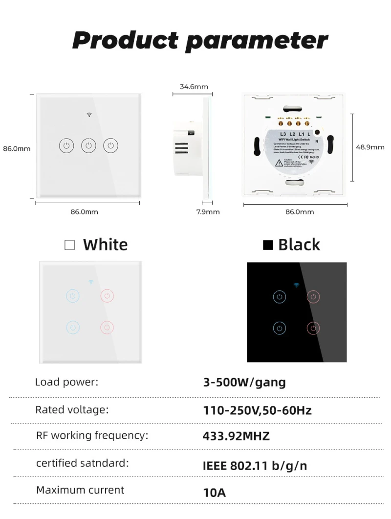 Сенсорный экран из закаленного стекла этого Смарт-переключателя чувствителен к касанию управления, высококачественный прочный стеклянный материал обеспечивает до 20 миллионов сенсорных фигур через наше тщательное тестирование.