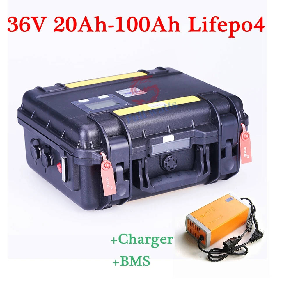 Водонепроницаемый Lifepo4 36V 20Ah 40Ah 60Ah 80Ah 100ah литиевый аккумулятор bms для электровелосипеда, Троллинговый двигатель, инвертор солнечной батареи + зарядное устройство