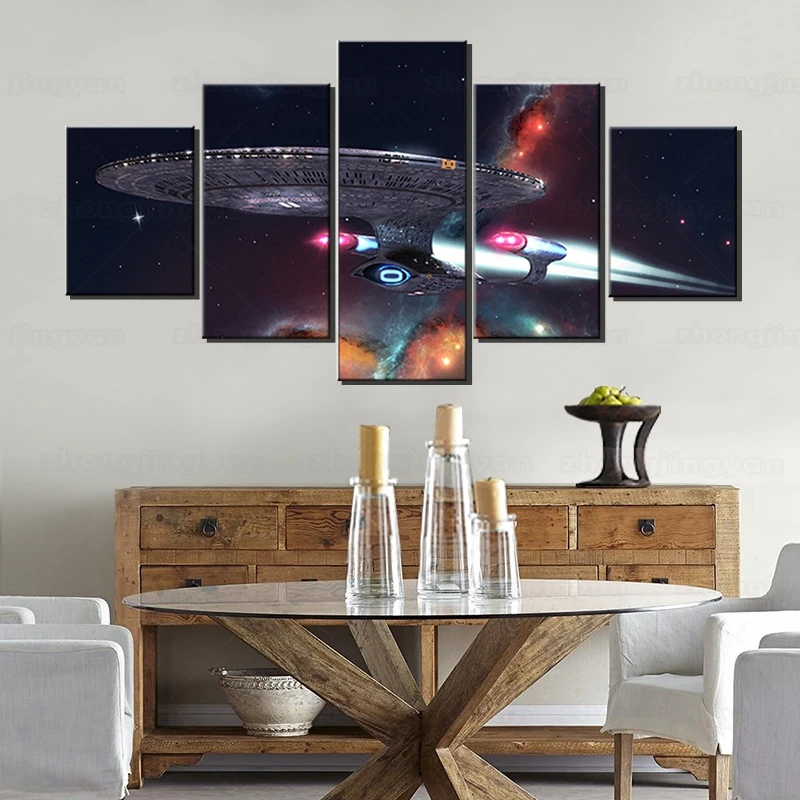 5 панелей постер фильма "Звездный путь", фантазия, HD Настенная картина, космос, Вселенная, космический корабль, холст, фото, настенное искусство, домашний декор, подарок для мальчика