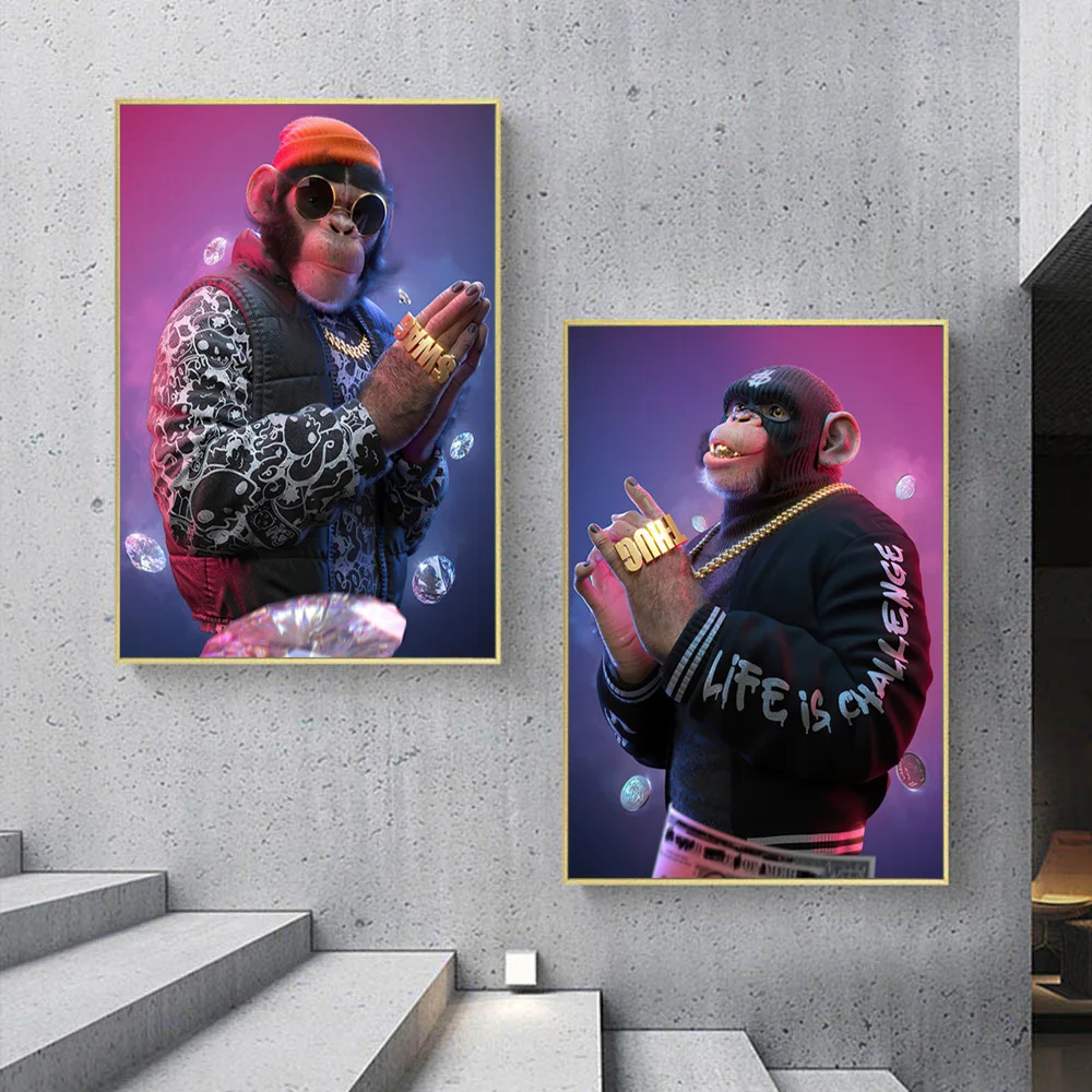Swag Thug Повседневный постер обезьяны и принты Забавный роскошный костюм животные Холст Искусство домашний декор настенная живопись для гостиной