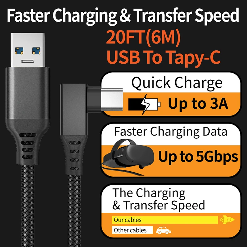2) Модный дизайн: подходит для Oculus Quest/ for Quest 2 VR, для Oculus Quest link cable 16 футов (5 м) сверхмощная, Высокоскоростная передача данных и Быстрая зарядка USB 3. От 0 Type C до USB Type A.