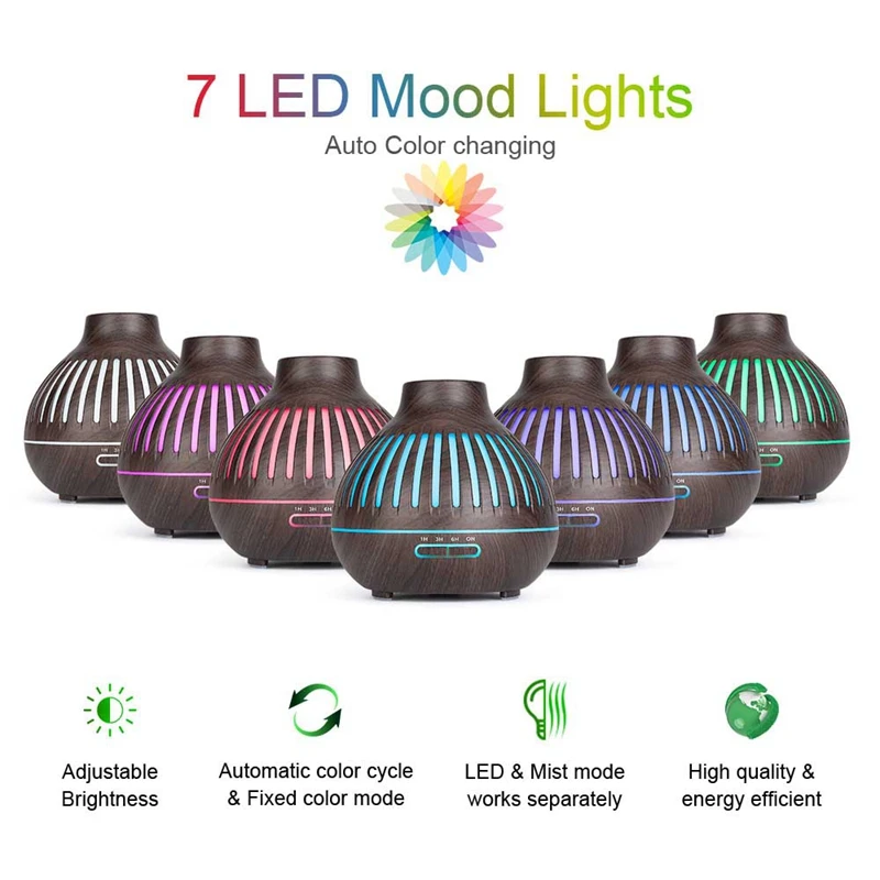 Арома-диффузор для эфирных масел, 400 мл древесины холодного ароматизирующего пара Бесшумная увлажнитель с Цвет светодиодный свет штепсельная вилка европейского стандарта