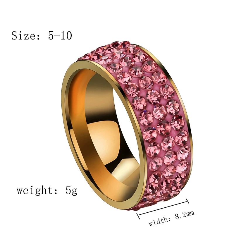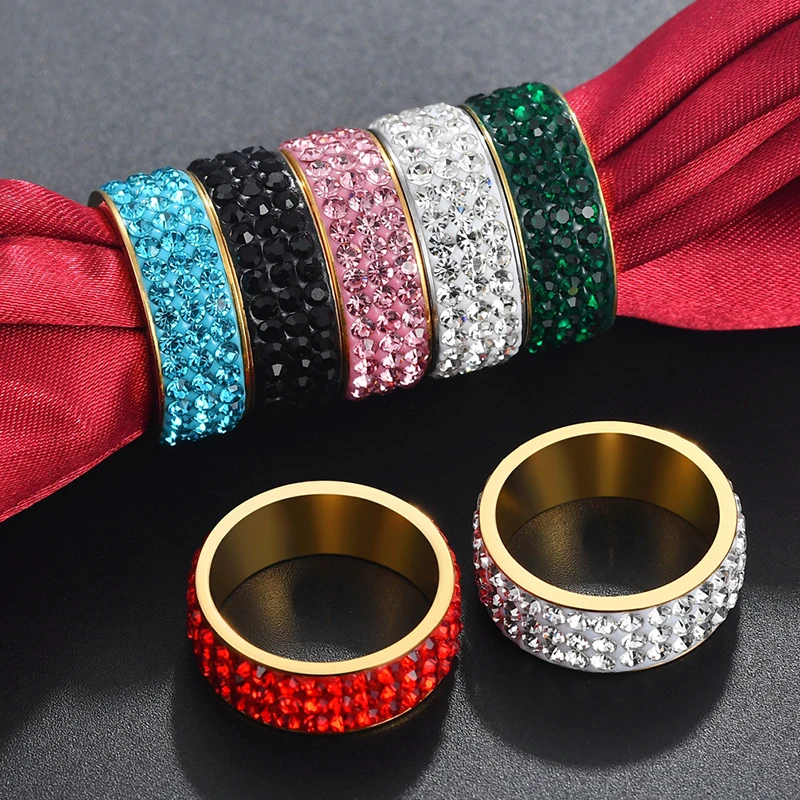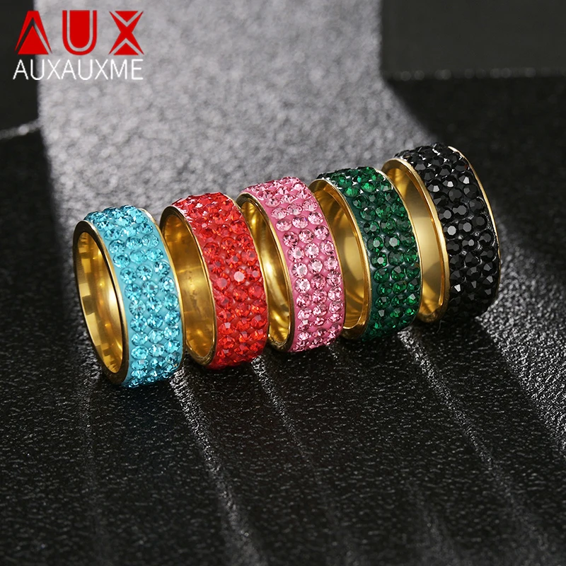 Auxauxme модные 3-рядные Свадебные кольца с кристаллами для женщин золотые из нержавеющей стали розовые красные зеленые камни обручальные ювелирные изделия для влюбленных