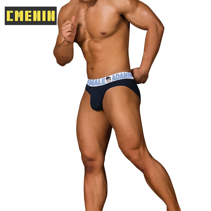 Мужские трусы брифы из хлопка sпанси, темно-синие быстросохнущие трусы бикини, сексуальное нижнее белье для мужчин, гей-трусы, подарок AD7101, 2019