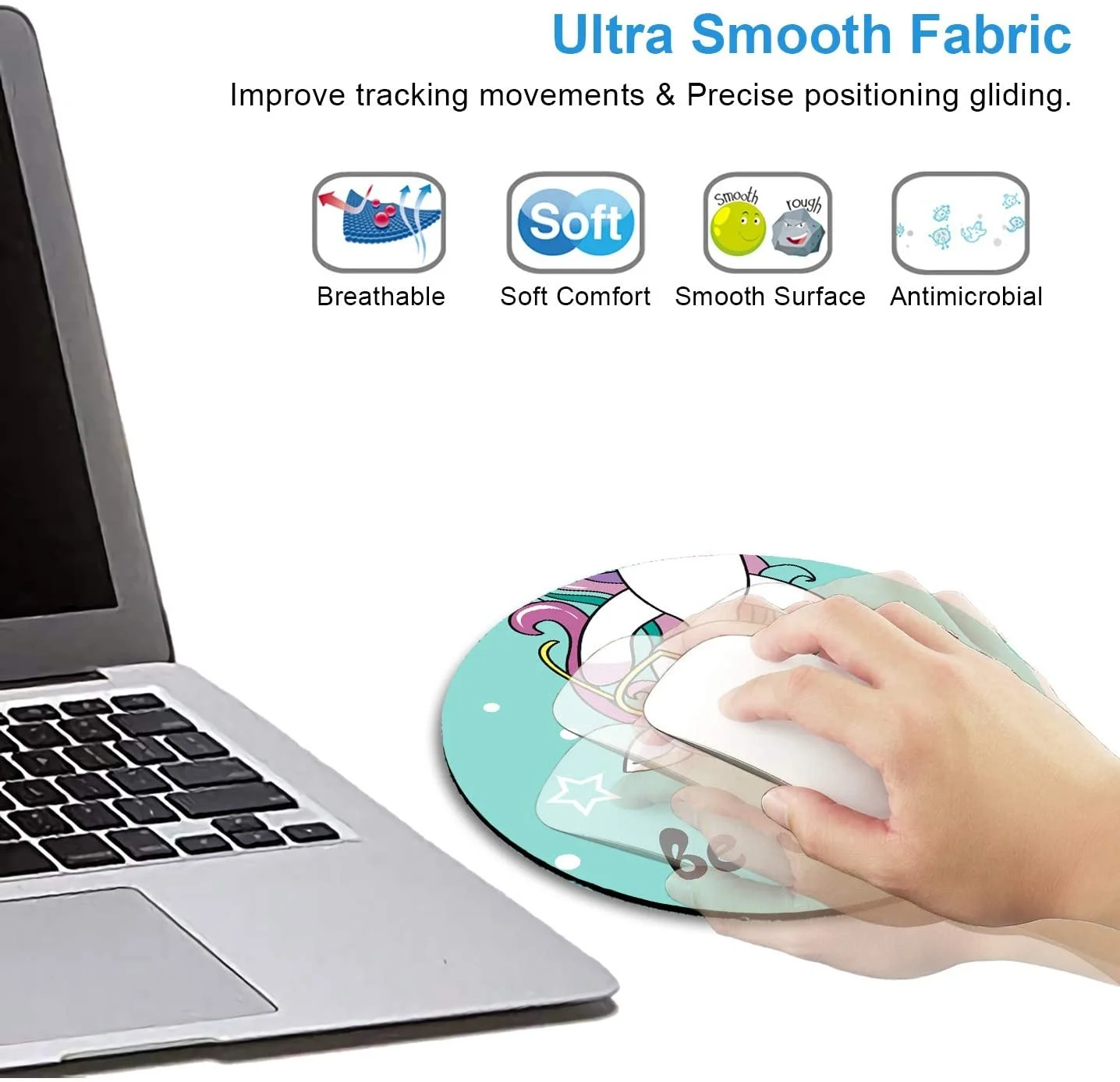 Симпатичный коврик для мыши IMAYONDIA для девочек, Детский круглый коврик для мыши в очках с единорогом, животный дизайн, маленький коврик для мыши