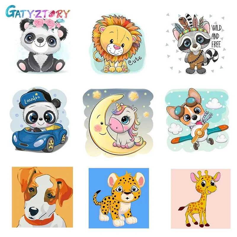 GATYZTORY рамка милые животные DIY номера Рисование Современная Нас...