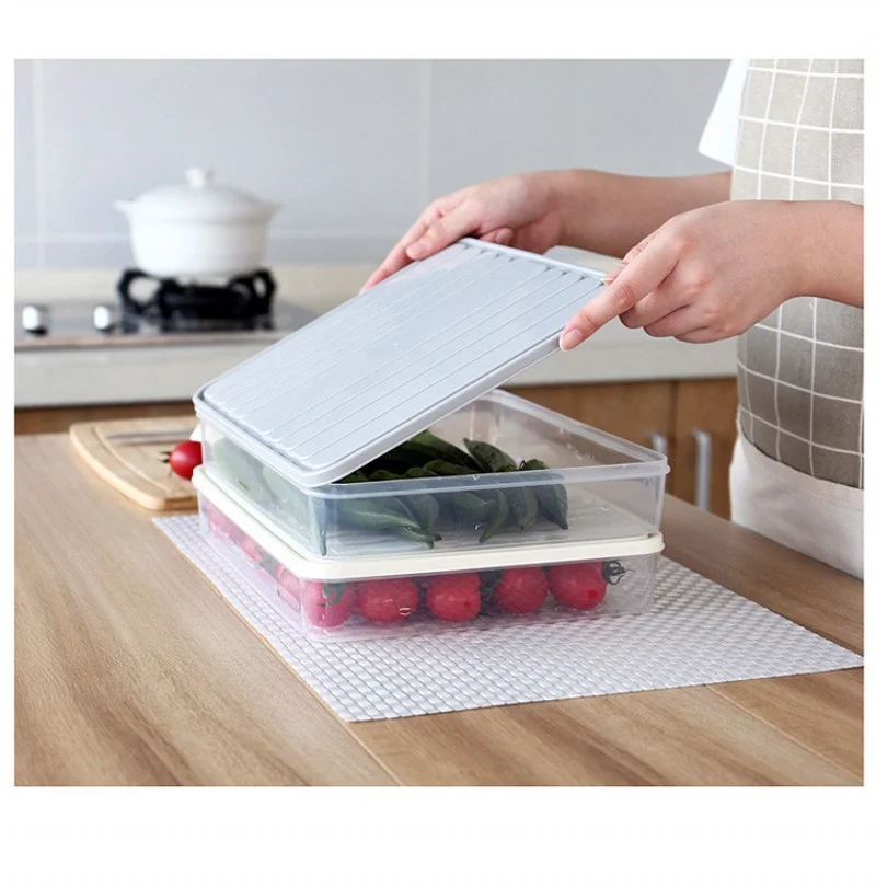 Прозрачный корпус коробки, легко идентифицировать и хранить еду, запечатанный крышкой, чтобы предотвратить запах, легко хранить различные фрукты и овощи, может быть сложен и сохранен, экономя пространство для хранения.