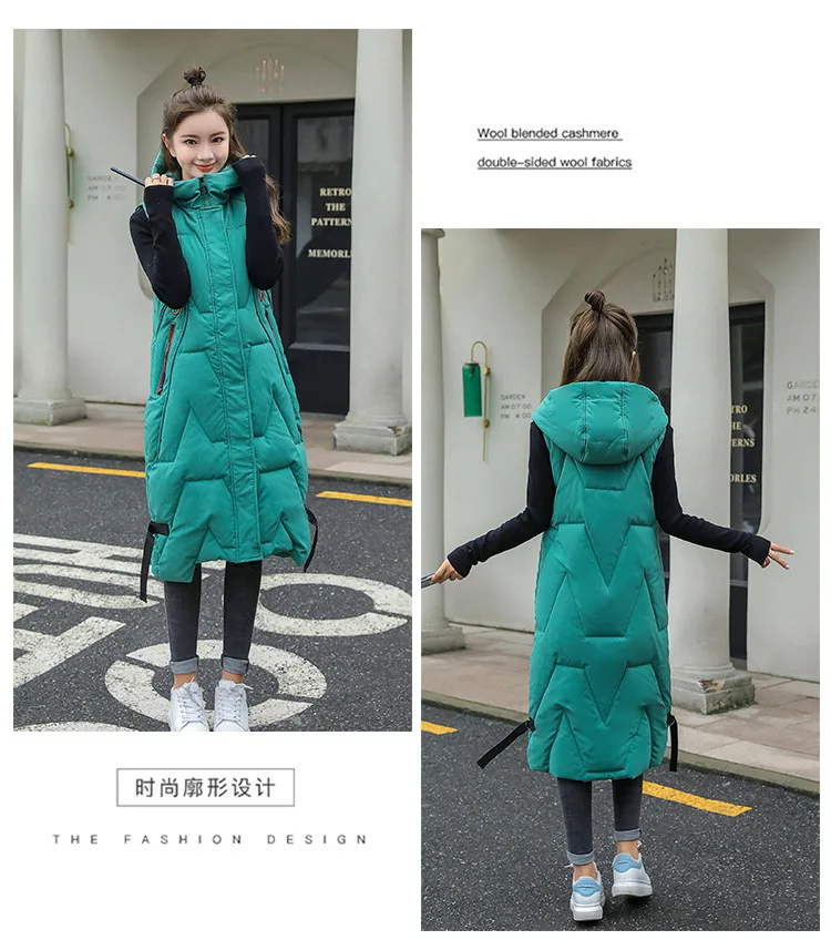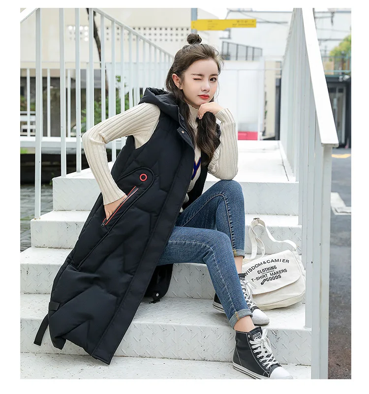 Зимний Длинный жилет, Женская однотонная куртка с капюшоном и карма...
