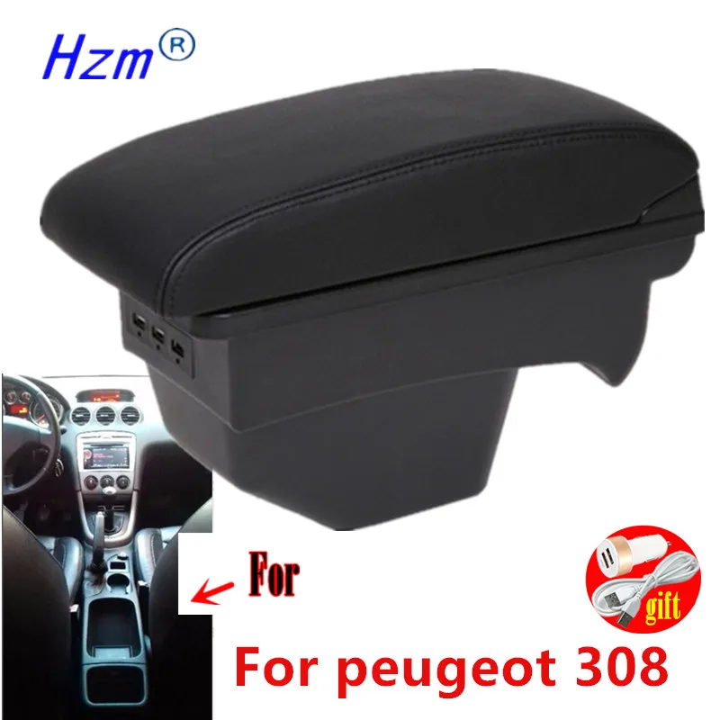 Подлокотник для peugeot 308, подлокотник для 308 SW, Peugeot 309, автомобильный подлокотник, внутренняя коробка для хранения, аксессуары, светодиодный ОД