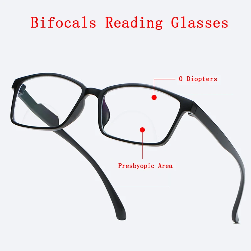 Очки для чтения TR90 для мужчин и женщин, прямоугольные ретро-очки для пресбиопии, блокирующие светильник свет, с одним фокусным расстоянием и бифокальным увеличением