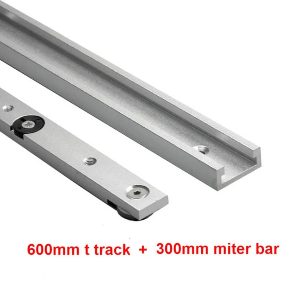 Т-образный паз из алюминиевого сплава, 1 комплект, торцевая направляющая и торцевая направляющая, Настольная пила, деревообрабатывающий инструмент, верстак сделай сам, 600 мм + 300 мм, серебристый
