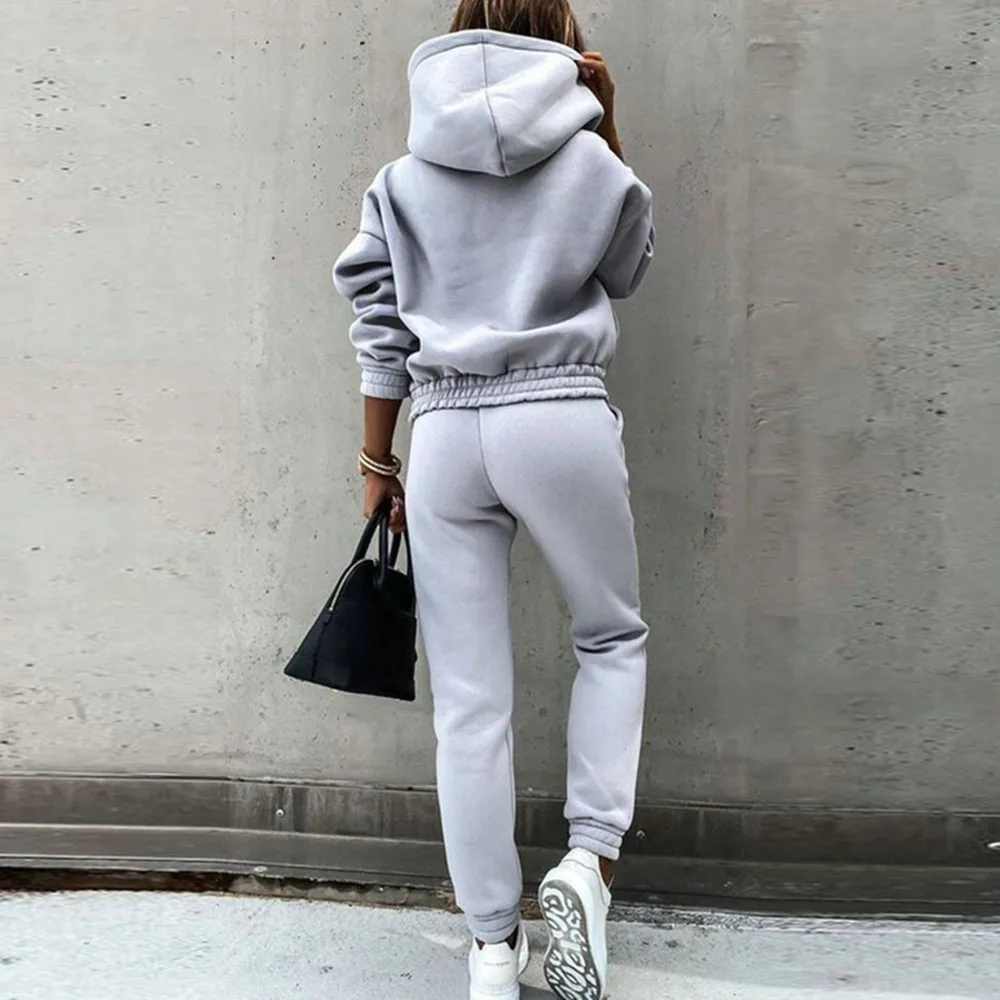 Костюм спортивный женский весенний из свитшота с капюшоном и длинных брюк
