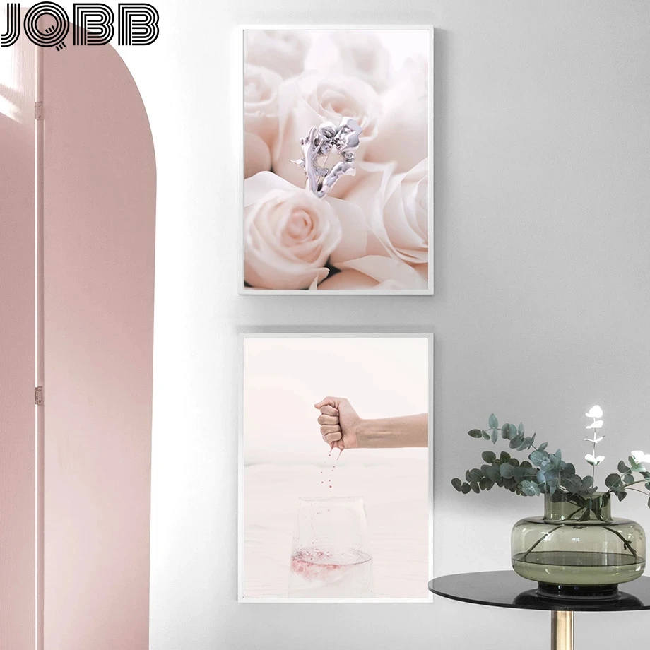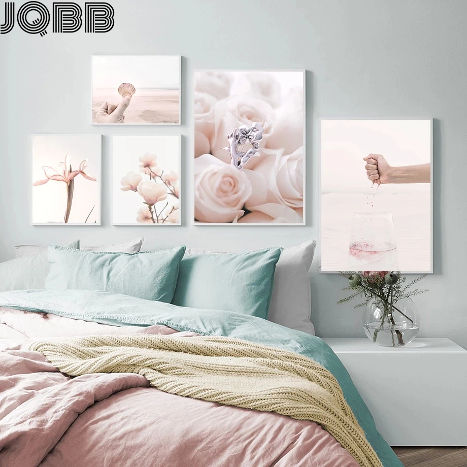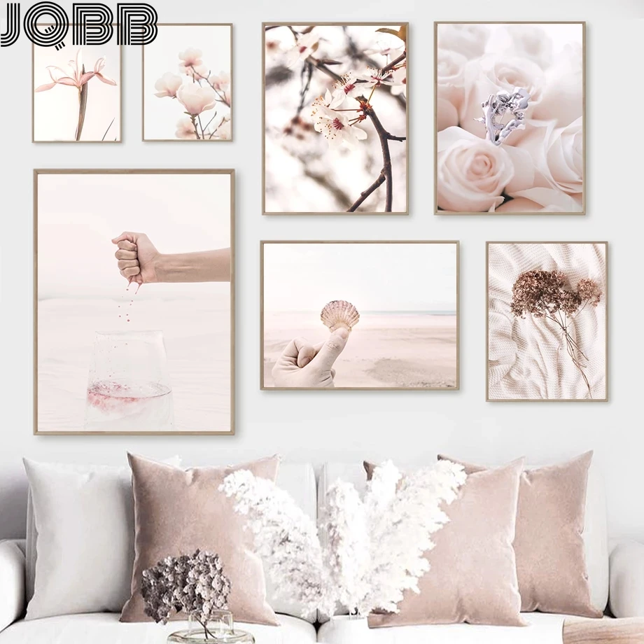Скандинавский природный пейзаж, холст, живопись, розовый, сладкий цветок, дерево, ракушки, настенный плакат, картина скандинавский принт, Современное украшение для дома