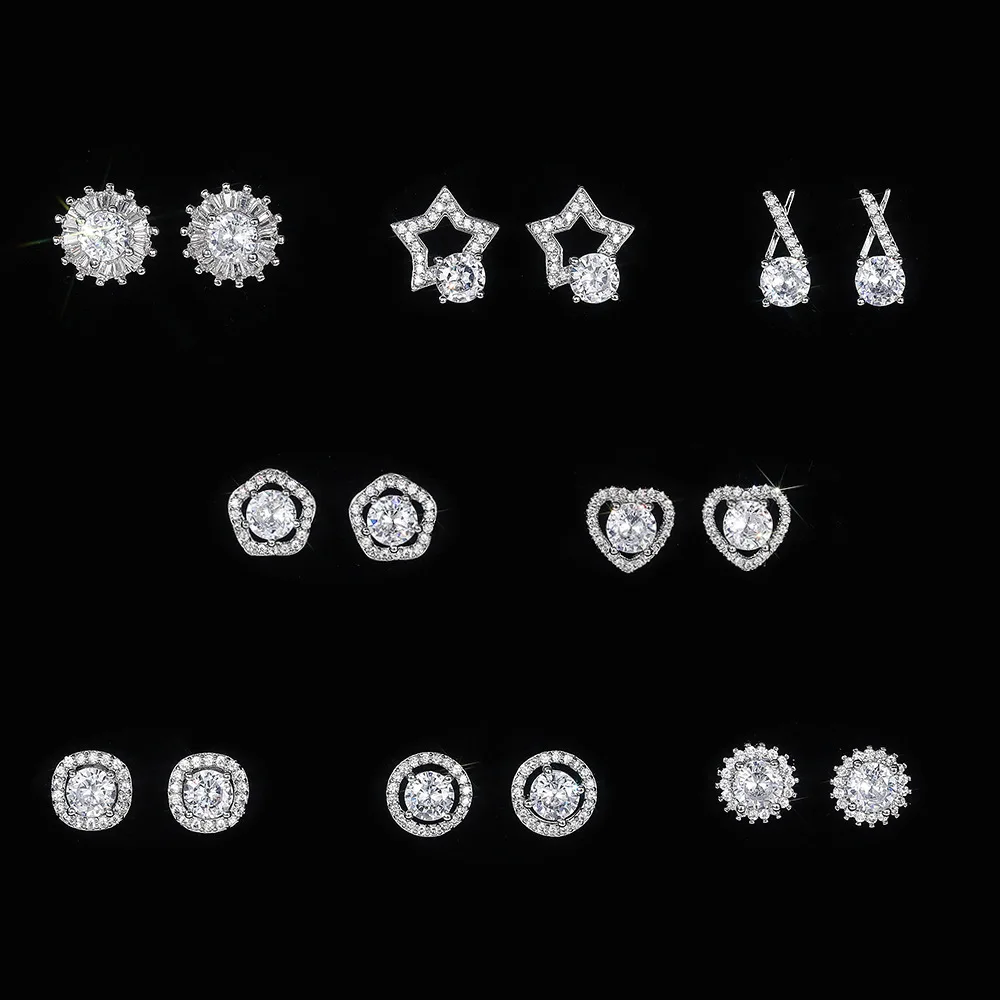 Симпатичные Bling CZ камень Циркон Серебро Цвет, серьги со шпилькой...