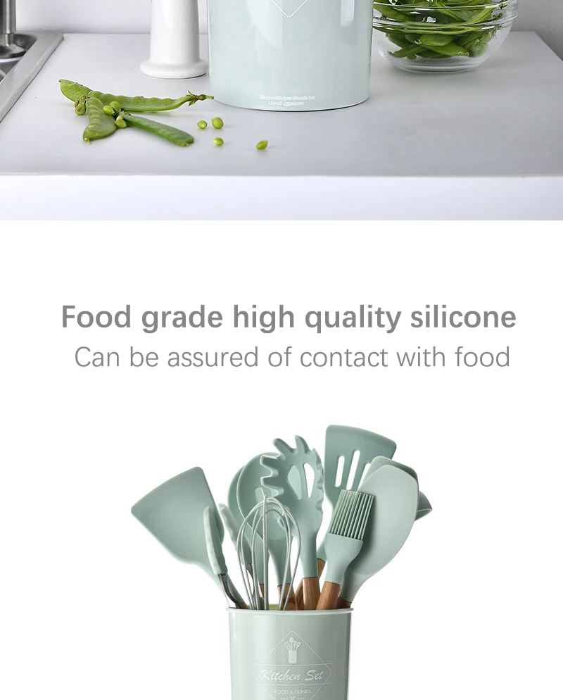 Набор силиконовых кухонных принадлежностей, кухонная посуда с ящико...