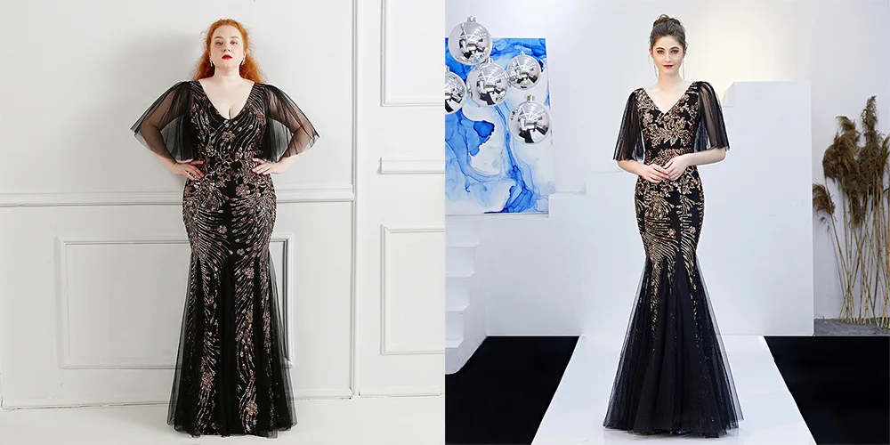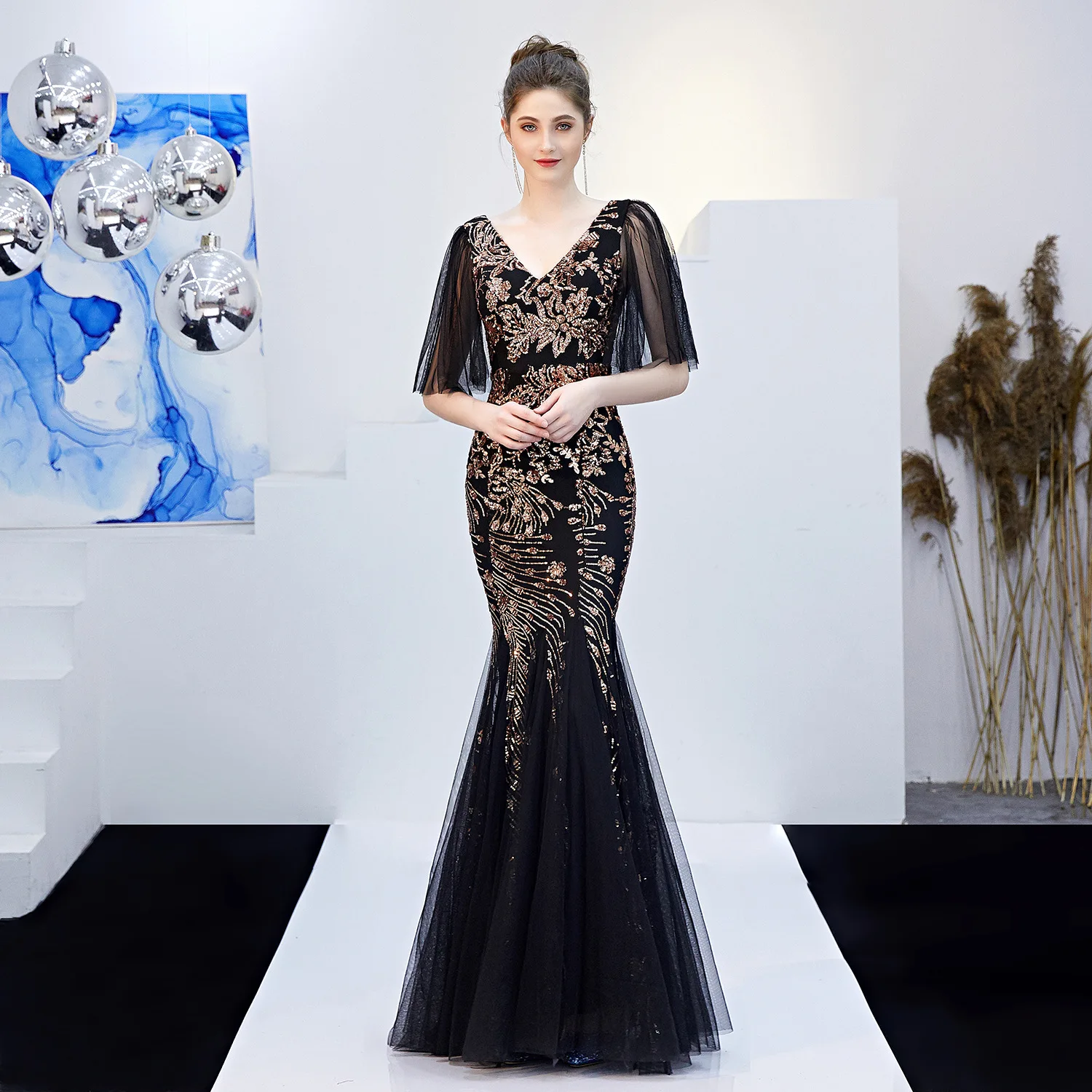 Женское коктейльное платье, черное блестящее вечернее платье-Русалка с V-образным вырезом, в полную длину, 2021