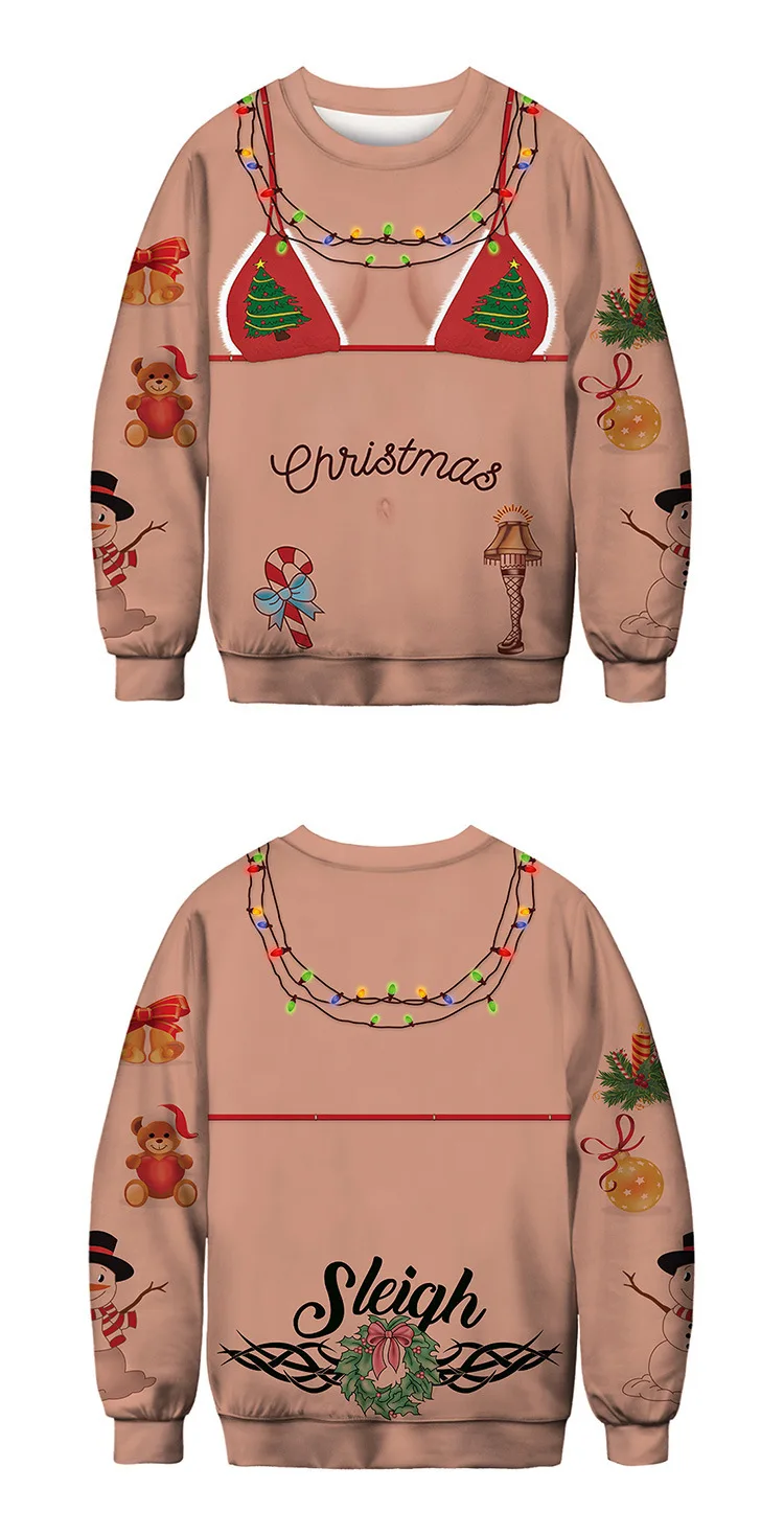 Уродливая Рождественская Толстовка Унисекс 2021 для праздников, рождественские Смешные Толстовки с имитацией волос Санта-эльфа, осенне-зимние блузки, одежда