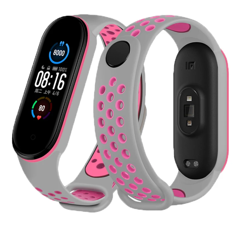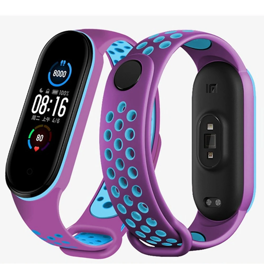 Силиконовый ремешок для Xiaomi Mi Band 5 4 3 6 пористый двухцветный...