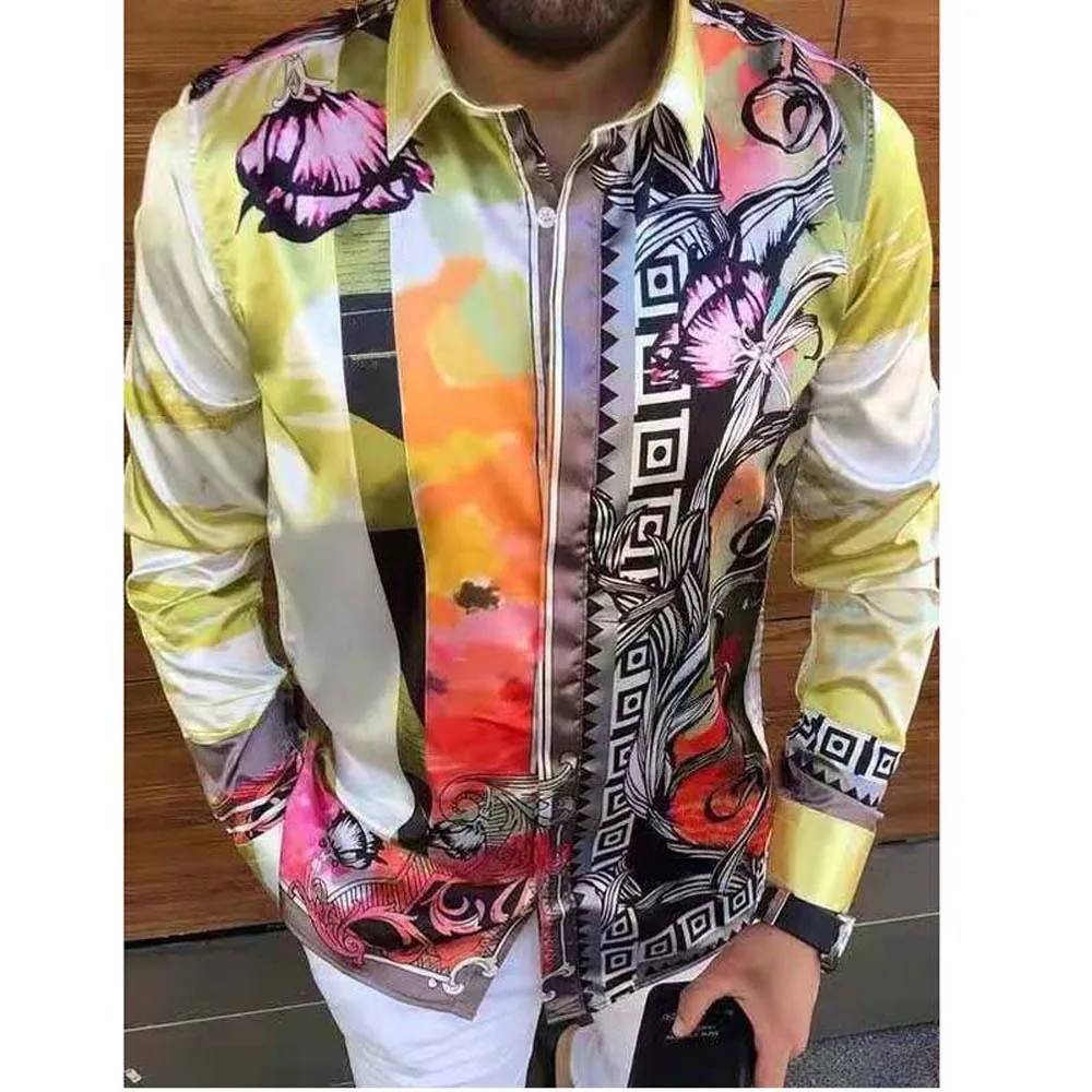 Рубашка мужская с длинным рукавом, Модная Удобная Повседневная блузка из полиэстера, с принтом, в стиле Харадзюку, лето 2021