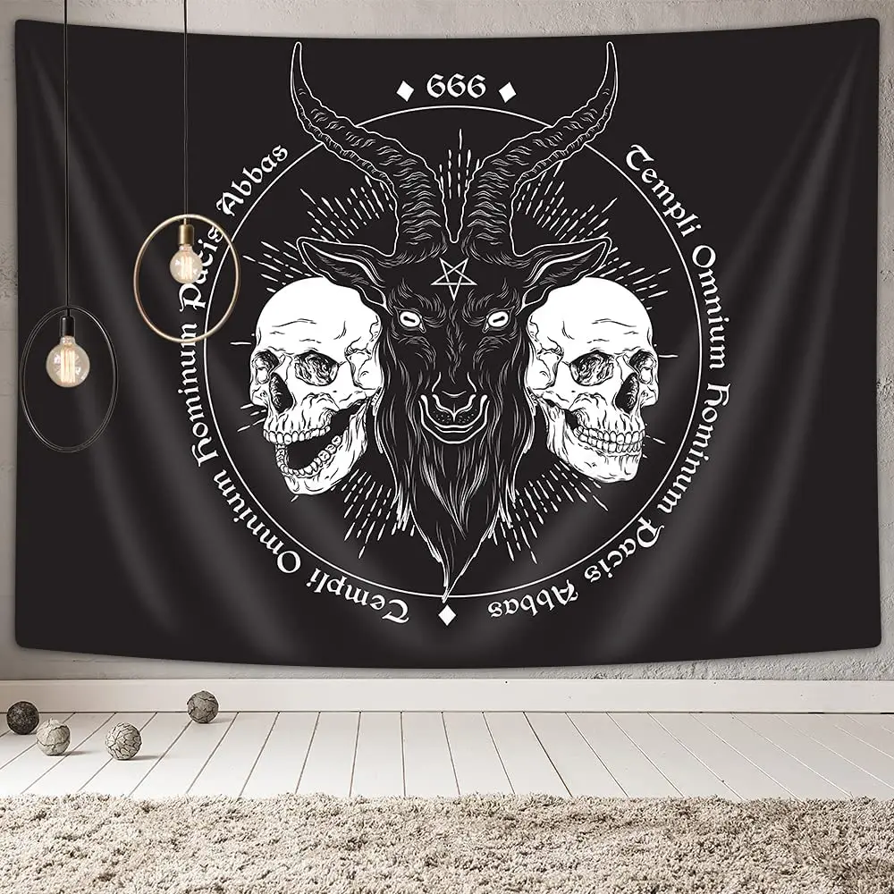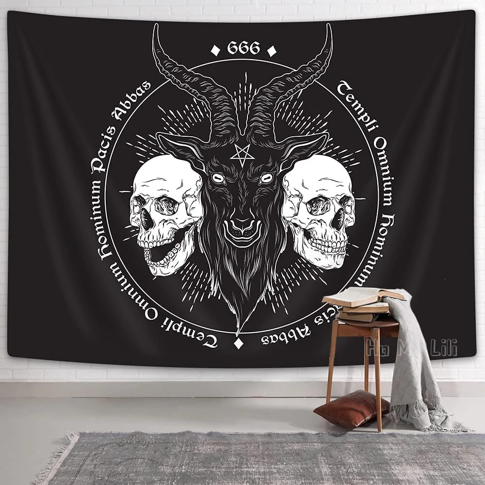 Черно-белый гобелен Baphomet с головой козы, гобелен, пентаграмма, ...
