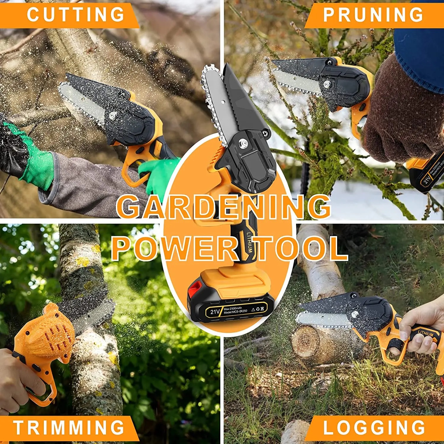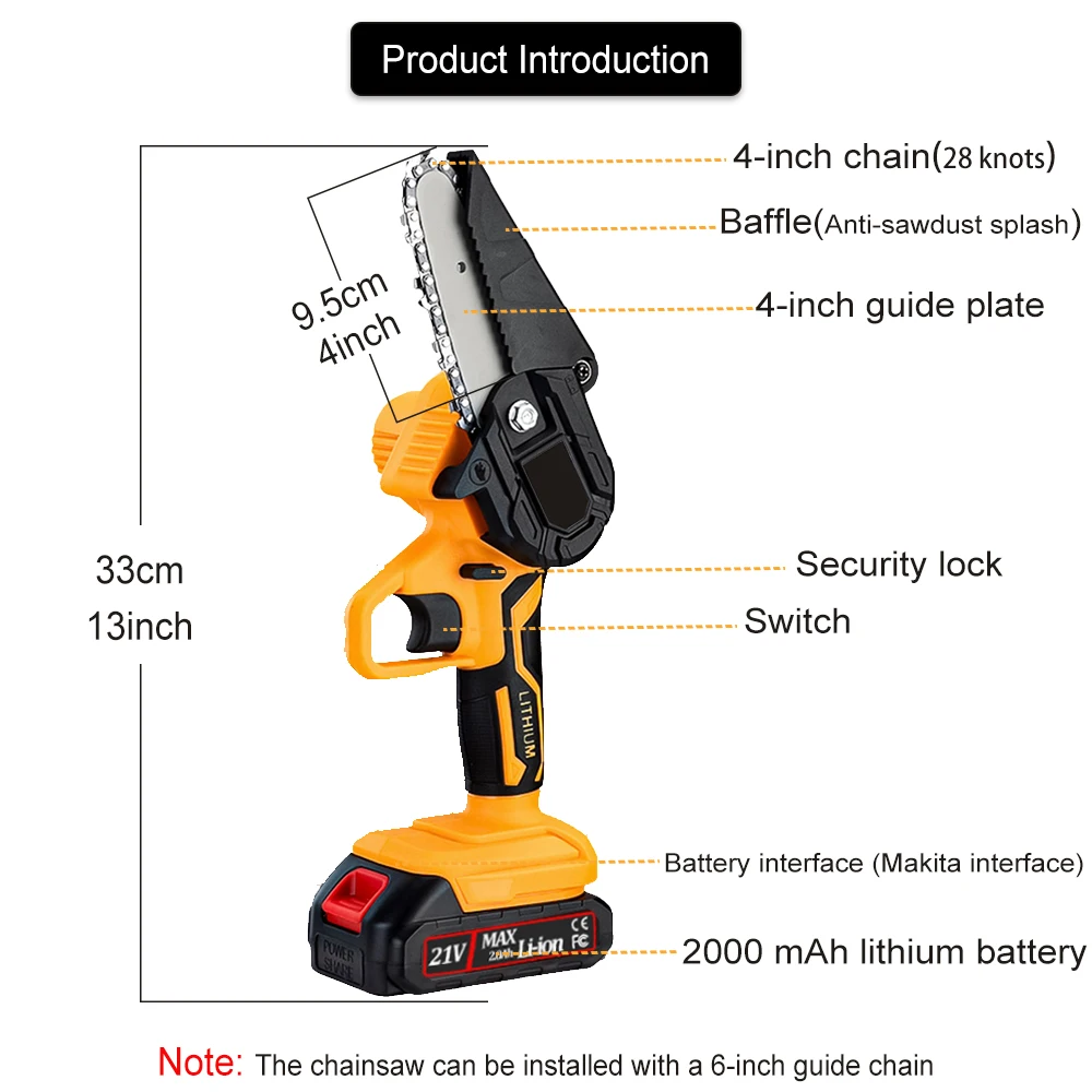 Особенности:Перезаряжаемая Электрическая цепная пила, светильник и портативный, длительный срок службы батареи, без повреждений коры.Светильник вес тела, светильник и удобный, светильник вес конструкции, долгое время хранения и не устают руки.Двигатель из чистой меди, сильная мощность, быстрая резка, повышение эффективности.Практичная, быстрая скорость, низкое энергопотребление.Переключатель отличного качества, быстрая и медленная регулировка, плавное изменение скорости.Интеллектуальная плата управления цепью, защита от перегрузки, для удовлетворения ваших различных потребностей в конструкции.Специальная направляющая пластина, шарик из вольфрамовой стали не нужно смазывать, так что машина уменьшает сопротивление во время эксплуатации и уменьшает износ на машине.Маленький размер, можно держать одной рукой.Высококачественная направляющая цепь, глубокая закалка, более износостойкая, гладкая резка. Материал: АБС + металлЦвет: желтый, синий и белыйАккумулятор: 1 * литиевая батарея, 21 в, 2000 мАч (в комплекте)Мощность: 1200 ВтДлина направляющей пластины: 4/5/6 дюймаСкорость цепи: 5 м/стиль Abody * 16 дюймов (направляющая планка осветителя) * 15 дюймов (направляющая планка осветителя) * 14 дюйма (направляющая планка осветителя) * 16 дюймов цепи * 15 дюймов цепи * 14 дюймовая цепь * 1Гаечный ключ * 1Отвертка * 1Аккумулятор 2000 мАч * 1Зарядное устройство * 1Руководство продукта * 1