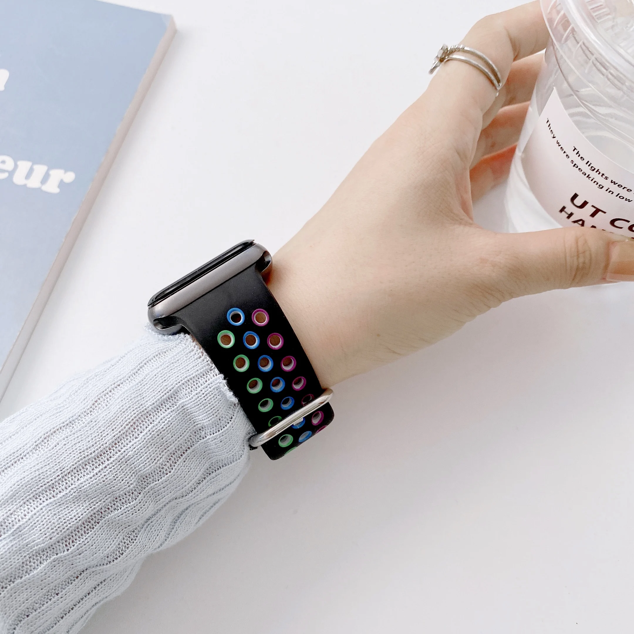 Силиконовый ремешок для Apple watch 6 se 5 4 40 мм 44 мм, спортивный браслет для iwatch 321, 38 мм 42 мм, Радужный Браслет