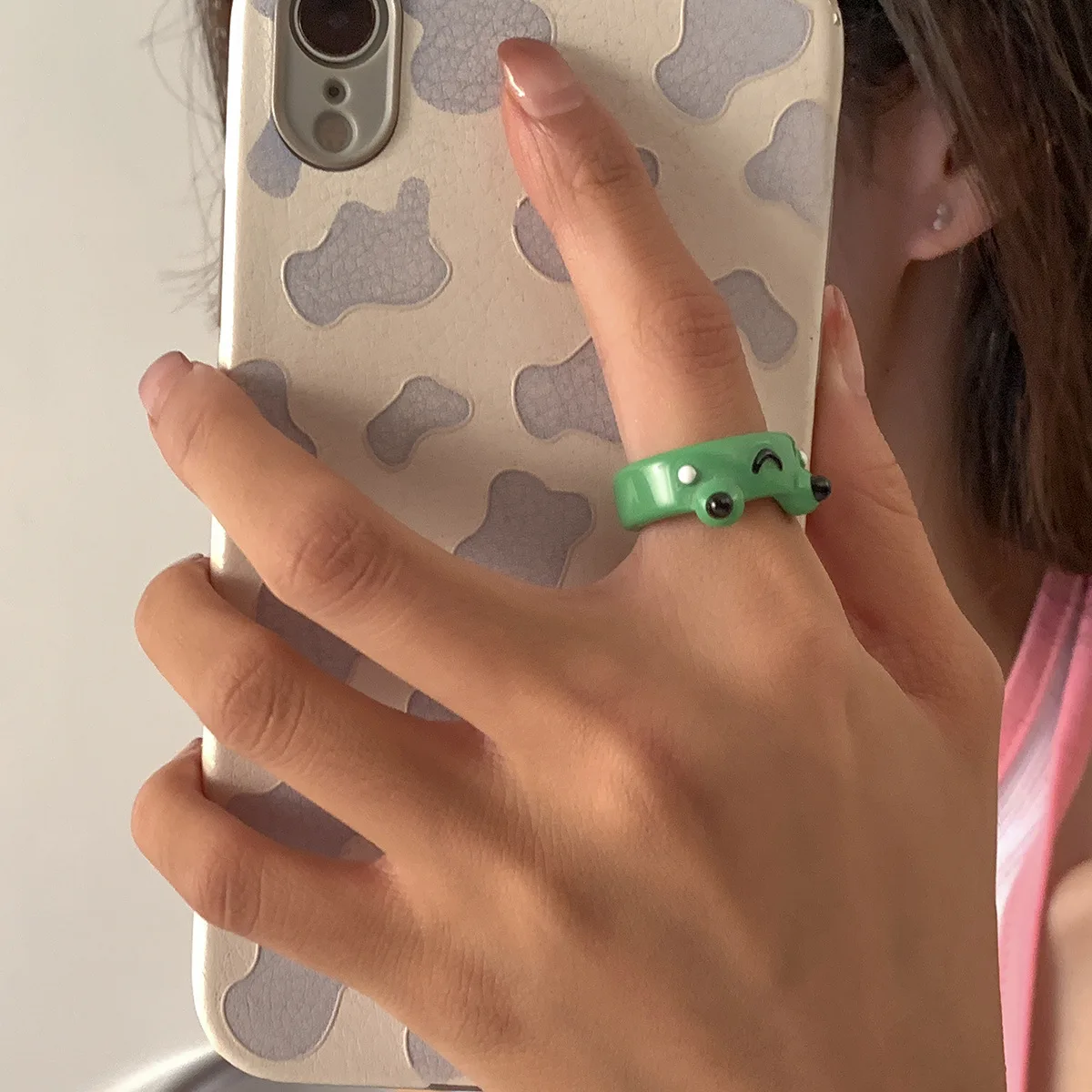 Кольцо с симпатичной лягушкой, кольца из акриловой смолы для женщин...