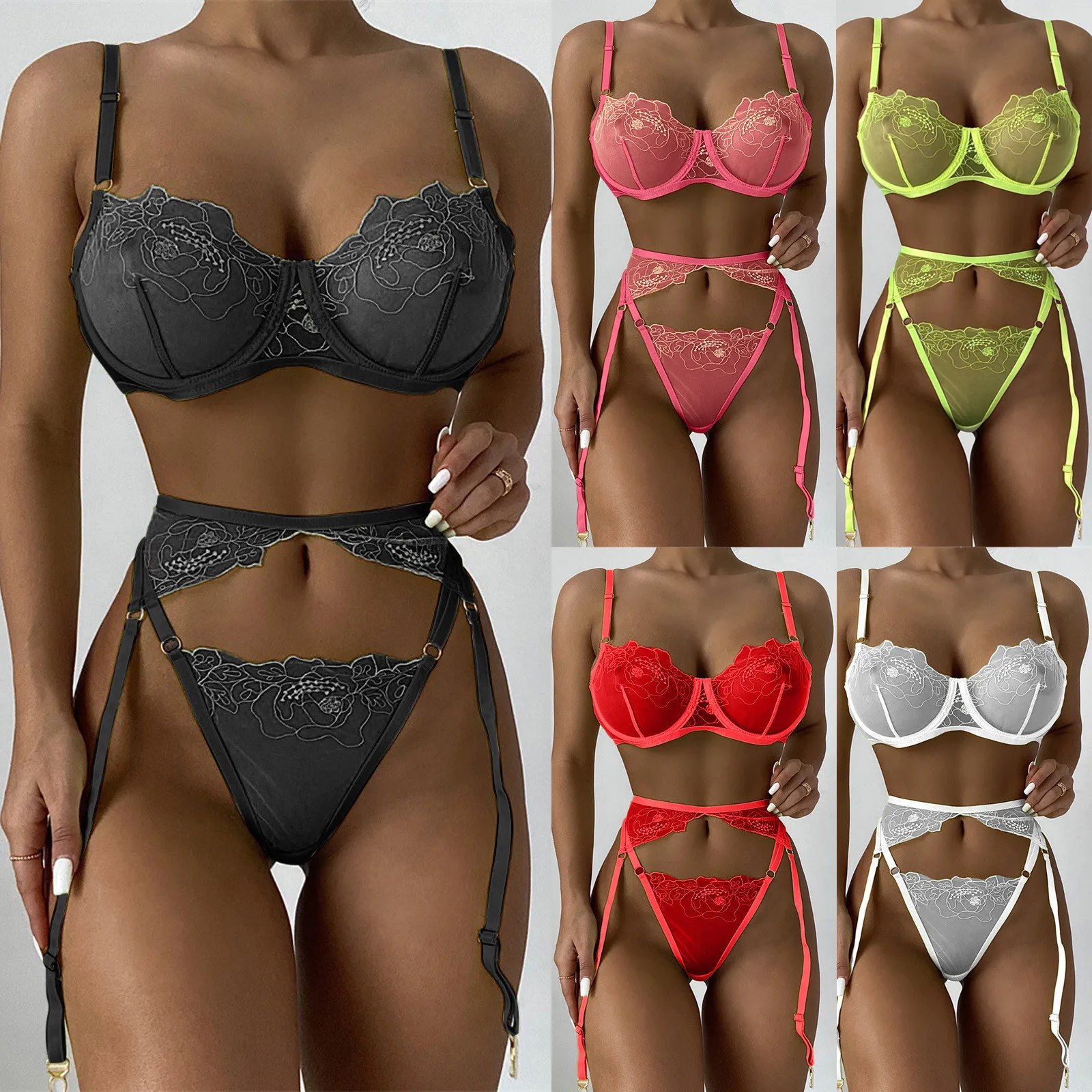 Комплект прозрачного нижнего белья для женщин, модный кружевной прозрачный бюстгальтер, стринги, подвязки, сексуальное нижнее белье, нижнее белье, чувственное женское белье