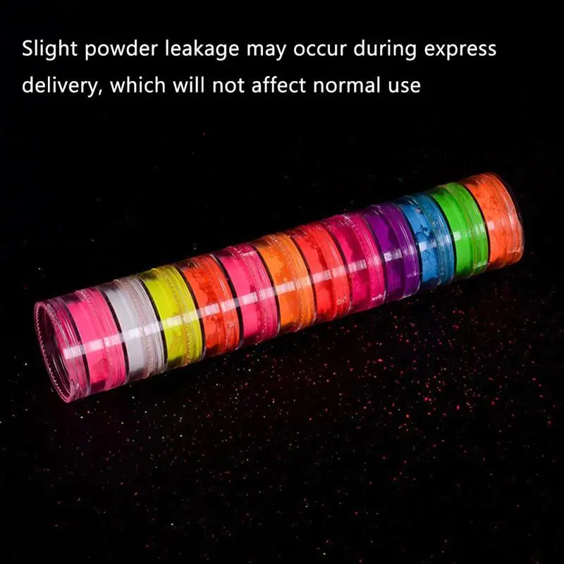 12 банок неонового эффекта блестящих декорация для ногтей градиент блестящих порошков