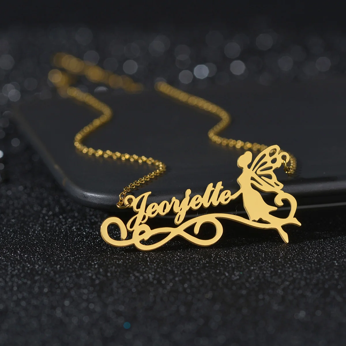 NameName Pendant Necklace,Letter Necklace,Cuban Chain Necklace,Personalized Pendant Necklace,Butterfly Necklace
