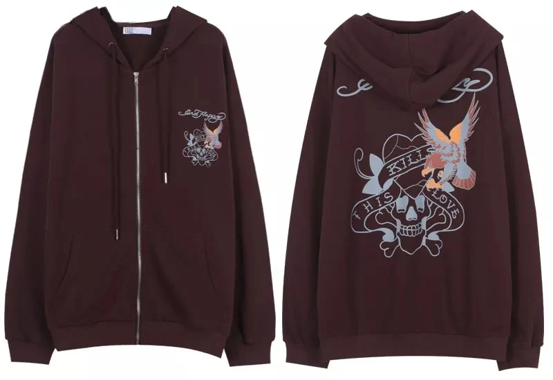 Свитшот Y2K, зимняя куртка, одежда, коричневый свитшот на молнии, Толстовка Оверсайз, Женский пуловер с длинным рукавом и карманами в стиле ретро XL
